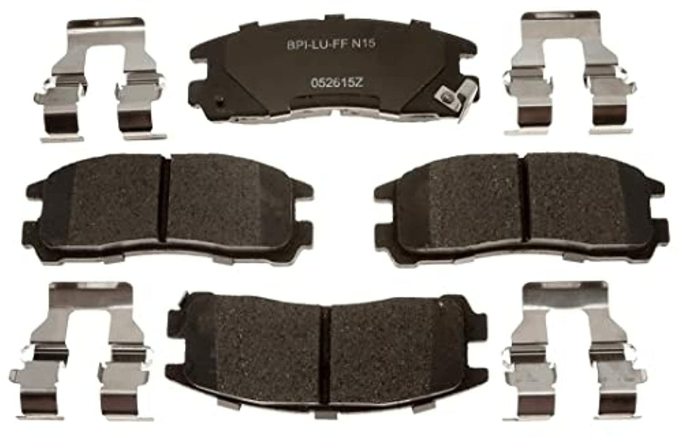 Q: How do the premium noise damping features work in these brake pads?A: The Raybestos MGD383CH brake pads are equipped with a premium noise damping layered shim, which helps reduce vibrations and noise during braking, ensuring a quieter and more comfortable driving experience.
