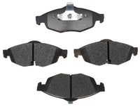 Q: What materials are used in the construction of these brake pads?A: These brake pads are made from either ceramic or semi-metallic materials, which are consistent with original equipment (OE) specifications, providing durability and effective performance.