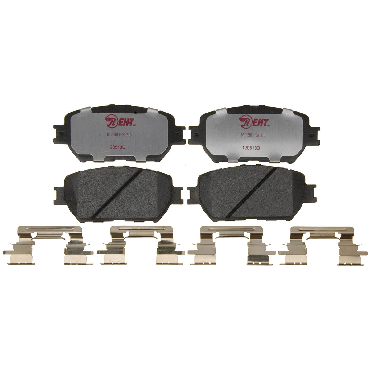 Q: What installation accessories are included with the brake pad set?A: The Raybestos Element3 EHT™ Replacement Front Brake Pad Set includes installation accessories such as abutment clips, piston clips, spreader springs, and anti-rattle clips to ensure easy and effective installation.