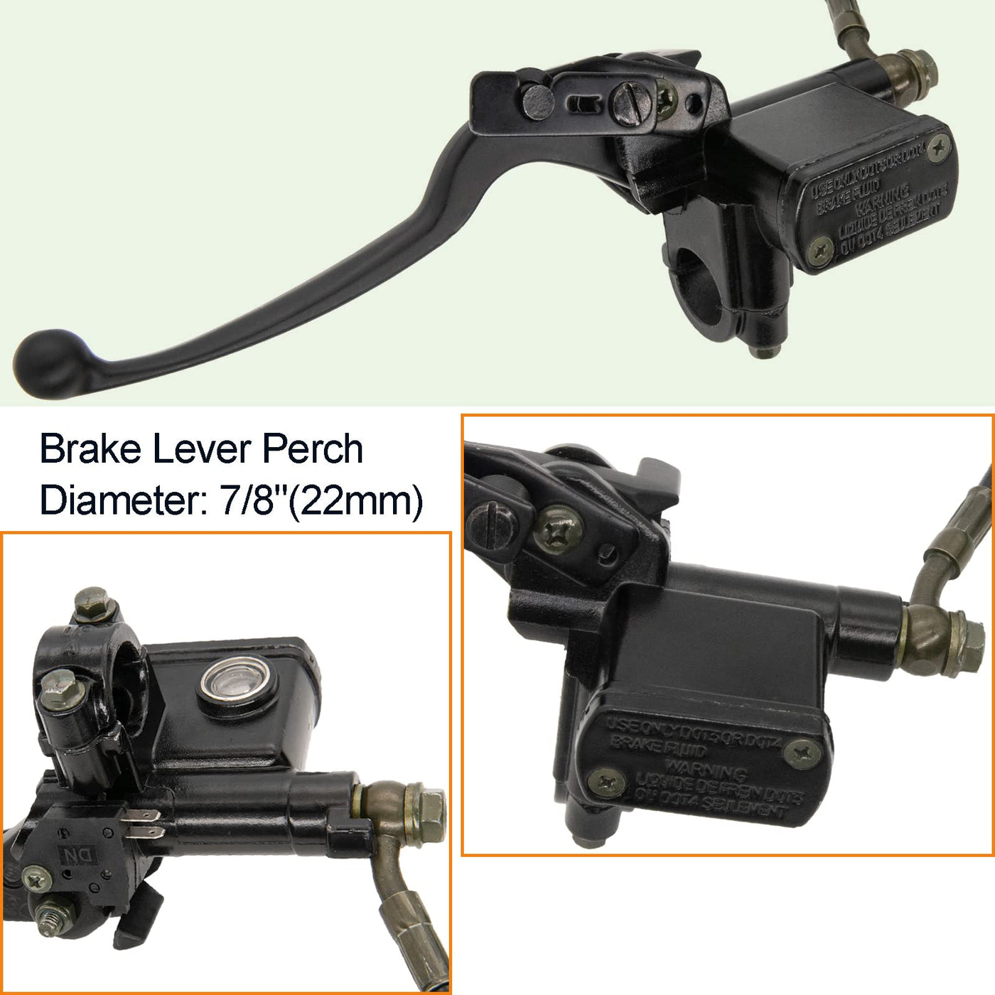 The Rear Hydraulic Disc Brake System Caliper Assembly made of high quality material, precision castings, solidly and durably, good working performance. Brake hose is 54'',Caliper mounting hole spacing: 2 1/2''; Brake Lever Perch Diameter: 7/8''. This Rear Hand Hydraulic Disc Brake Master Cylinder Caliper Assembly with Brake Pads fit for 50cc 70cc 90cc 110cc 125cc Chinese ATV Quad. This Rear Brake Master Cylinder Caliper Assembly fit almost all of the brands from China, such as TaoTao, Buyang, Coolsport, Kazuma, Sunl, ROKETA, AIM-EX. Package includes 1*Rear Hand Hydraulic disc brake caliper system with pads