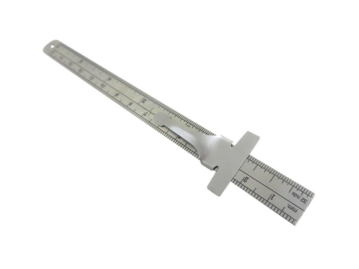 6 piece measurement kit contains the following: 1) 6"/150 mm inside spring calipers 2) 6"/150 mm outside spring calipers 3) 6"/150 spring dividers 4) 6"/150 pocket rule with clip 5) 6"/150 mm depth gauge 6) 6"/150 mm vernier calipers.