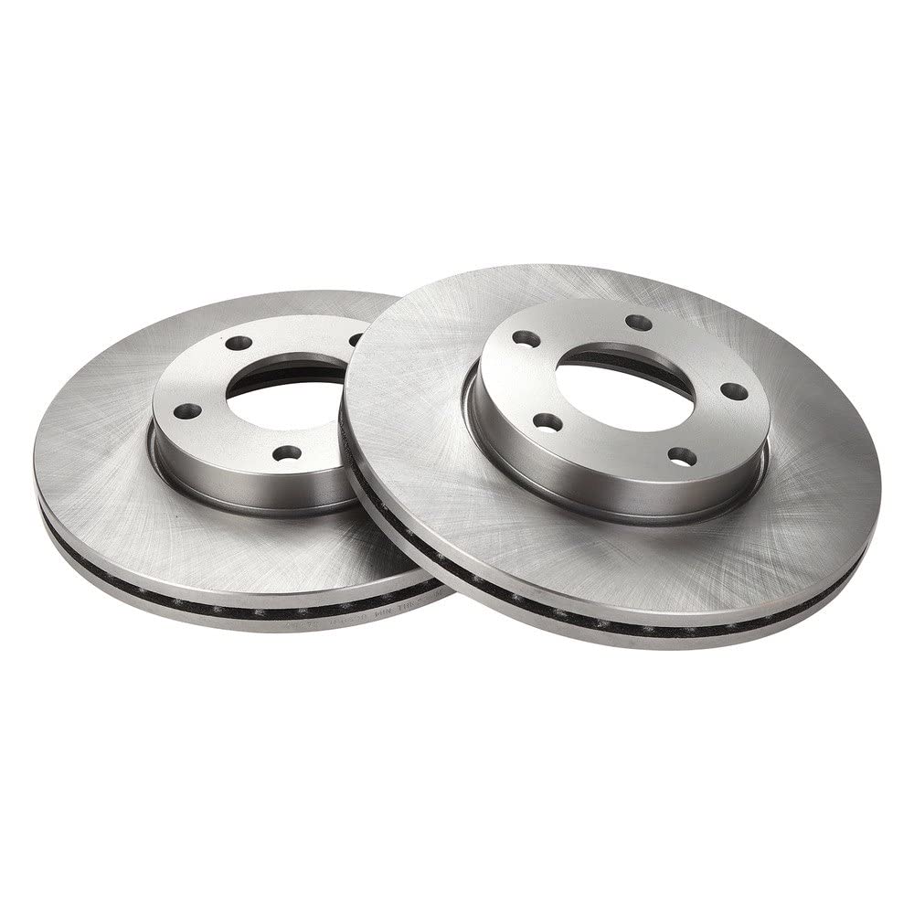 2 Piece Brake Rotor SetKit Includes(1) Front Driver Side Brake Rotor(1) Front Passenger Side Brake RotorFitmentCompatible with: 2004-13 Mazda 3 i Front Driver & Passenger SideProduct AttributesMounting Bolt Hole Diameter: 0.55 inDiscard Thickness: 0.91 inNominal Thickness: 0.98 inOverall Height: 1.91 inOutside Diameter: 10.94 inMounting Bolt Hole Circle Diameter: 114 mmMounting Bolt Hole Diameter: 14 mmCenter Hole Diameter: 2.83 inDiscard Thickness: 23 mmNominal Thickness: 25 mmOutside Diameter: 278 mmMounting Bolt Hole Circle Diameter: 4.49 inStud/Lug Hole Quantity: 5Center Hole Diameter: 72 mmMaterial: Cast IronConventional Or Drum-In-Hat Type Rotor: ConventionalRust Resistant Coating: NoABS Tone Ring Included: NoGrade Type: RegularSurface Type: SmoothSolid Or Vented Type Rotor: VentedFront Brake Rotor Diameter: 10.94 in. (278mm)Quantity: 2 PieceWheel Lug Count: 5 LugRaces Included: NoBrake Rotor Venting Type: VentedProduct Features Direct Replacement: No modifications necessary G3000 Casting Alloy: Reduced noise and improved durability Non-Directional Surface Finish: Reduced vibrationsItem DetailsTRQ brake rotors are manufactured using premium G3000 casting alloy to reduce noise while braking and enhance service life. TRQ rotors have a non-directional finish to minimize the break-in period for new rotors and reduce vibrations throughout the rotors lifecycle. TRQ recommends replacing brake pads when you replace rotors to ensure even wear and improved component performance. All products are fit and road-tested in our Massachusetts R&D facility to ensure we deliver on our promise of Trusted Reliable Quality.Reference NumbersAimco: 31373Bendix: PRT5585DuraGo: BR31373Raybestos Brakes: 980295, 980295FZN, 980295P, 980295RWagner: BD126325