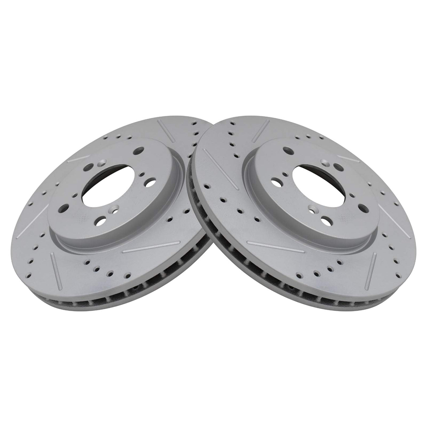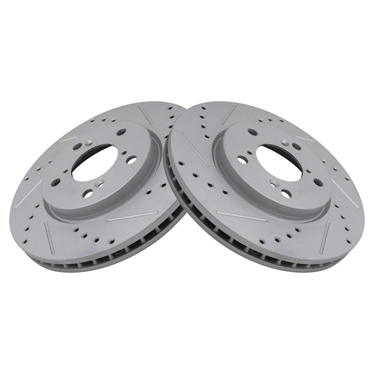 Trq Front Performance Brake Rotors Set Premium G-Coated Cross Drilled & Slotted Compatible With 2005-2010 Honda Odyssey