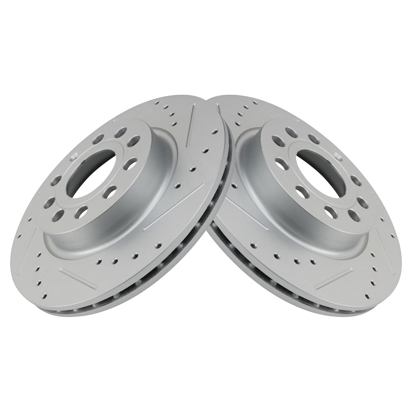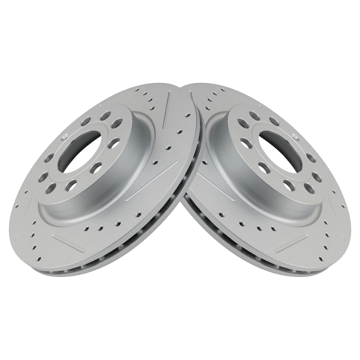Trq Front Performance Brake Rotors Set Premium G-Coated Cross Drilled & Slotted Compatible With 2011 Audi A3 Quattro 2013 Volksw