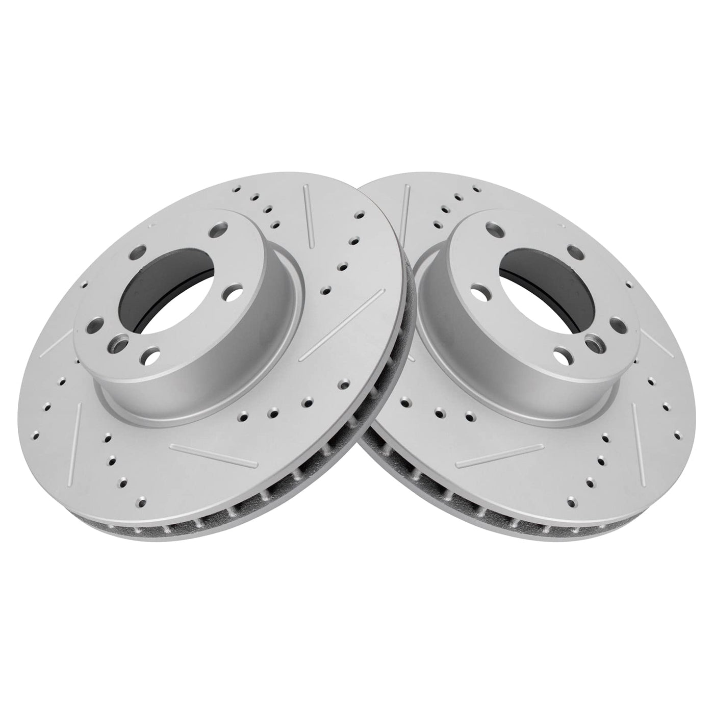 Trq Front Performance Brake Rotors Set Vented Premium G-Coated Cross Drilled & Slotted Compatible With 2001-2003 Bmw 530I 2000-2