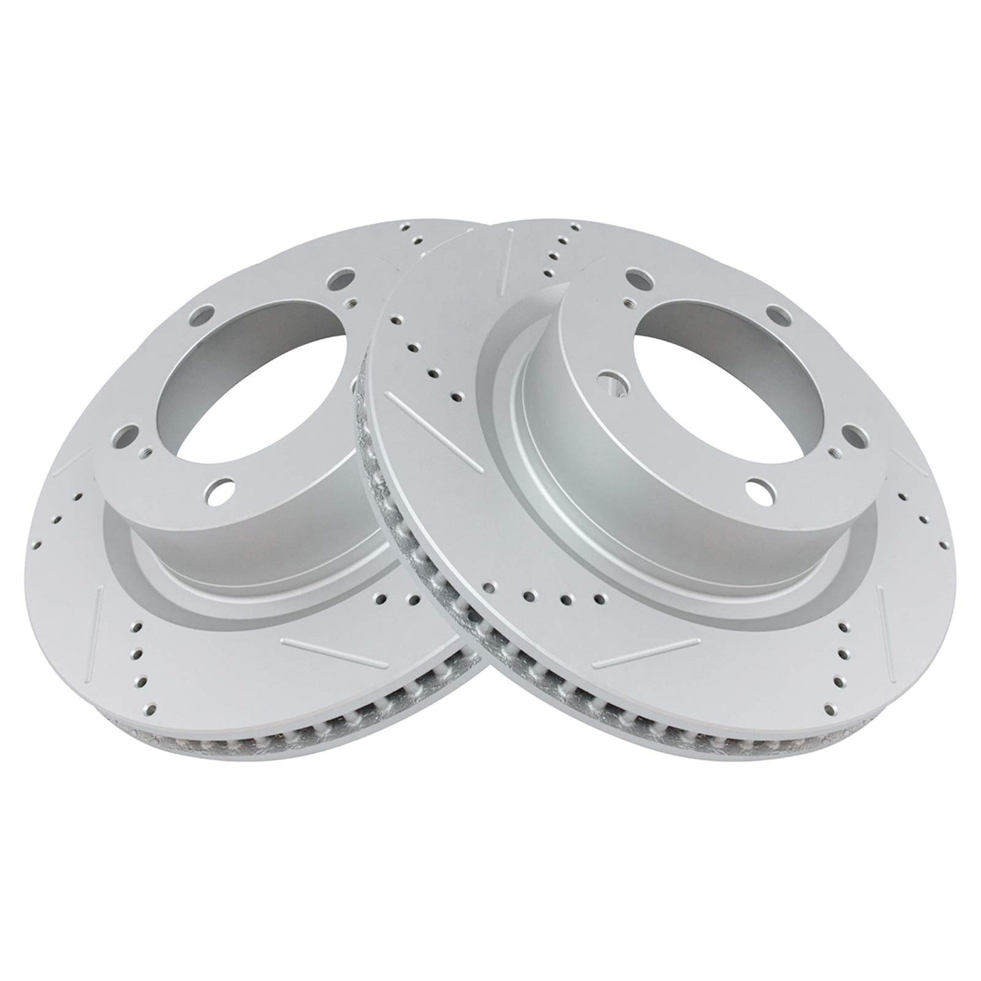 Trq Front Performance Brake Rotors Set Vented Premium G-Coated Cross Drilled & Slotted Compatible With 2016-2021 Lexus Lx570 Toy