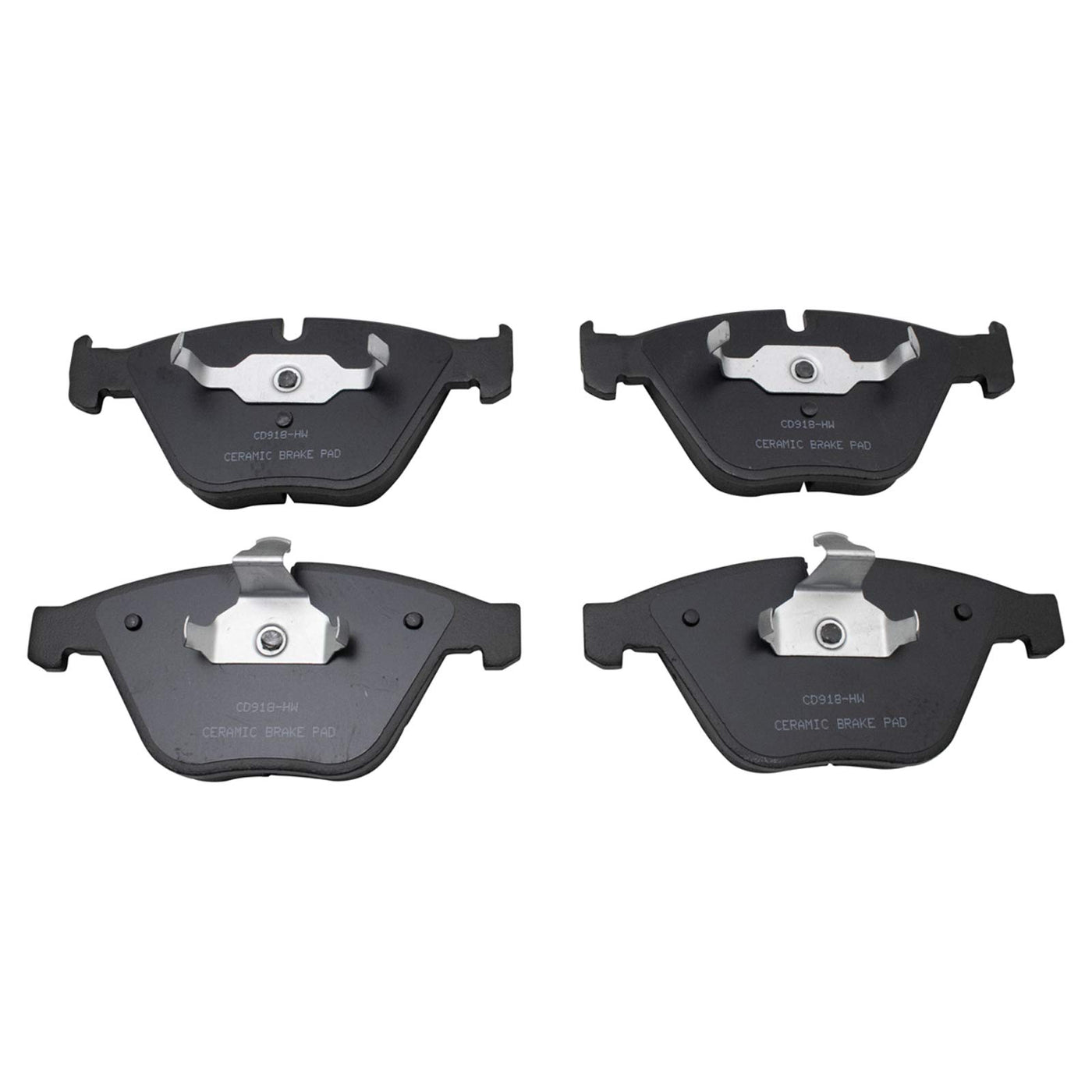 Ceramic Brake PadsFitmentCompatible with: 2008-11 BMW 328i FrontCompatible with: 2007-12 BMW 335i FrontCompatible with: 2009-11 BMW 328i xDrive FrontCompatible with: 2012-13 BMW 328i L6 3.0L FrontCompatible with: 2012-15 BMW X1 xDrive28i FrontCompatible with: 2012-15 BMW X1 xDrive35i FrontCompatible with: 2013-15 BMW X1 sDrive28i FrontCompatible with: 2007 BMW 328i From 10/01/07 Production Date FrontCompatible with: 2004-07 BMW 530i FrontCompatible with: 2012-13 BMW 328i xDrive L6 3.0L without M Sport Package FrontCompatible with: 2008-10 BMW 528i FrontCompatible with: 2006-08 BMW 750Li FrontCompatible with: 2008-13 BMW M3 FrontCompatible with: 2007 BMW 328xi From 10/01/07 Production Date FrontCompatible with: 2006-10 BMW 650i FrontCompatible with: 2008-10 BMW 535i FrontCompatible with: 2009-12 BMW 335i xDrive FrontCompatible with: 2011-16 BMW Z4 sDrive35is FrontCompatible with: 2008 BMW 328xi FrontCompatible with: 2006-07 BMW 530xi FrontCompatible with: 2002-05 BMW 745Li FrontCompatible with: 2006-10 BMW 550i FrontCompatible with: 2005-06 BMW 525i FrontCompatible with: 2009-10 BMW 528i xDrive FrontCompatible with: 2004-05 BMW 645Ci FrontCompatible with: 2008 BMW 535xi FrontCompatible with: 2009-10 BMW 535i xDrive FrontCompatible with: 2013 BMW 335i Convertible FrontCompatible with: 2008 BMW 528xi FrontCompatible with: 2002-05 BMW 745i FrontCompatible with: 2009-11 BMW 335d FrontCompatible with: 2004 BMW 525i Automatic Transmission FrontCompatible with: 2004-05 BMW 545i FrontCompatible with: 2008 BMW 335xi FrontCompatible with: 2006-07 BMW 525xi FrontCompatible with: 2006-08 BMW 750i FrontCompatible with: 2013 BMW 335i xDrive Coupe FrontCompatible with: 2011-13 BMW 335is FrontCompatible with: 2007 BMW 335xi From 10/01/07 Production Date FrontCompatible with: 2003-08 BMW 760Li FrontCompatible with: 2004-06 BMW 760i FrontProduct AttributesInner Pad Friction Material Thickness: 0.75 inOuter Pad Friction Material Thickness: 0.75 inOuter Pad Overall Thickness: 0.79 inInner Pad Overall Thickness: 0.79 inInner Pad Width: 155 mmOuter Pad Width: 155 mmOuter Pad Friction Material Thickness: 19 mmInner Pad Friction Material Thickness: 19 mmOuter Pad Height: 2.68 inInner Pad Height: 2.68 inOuter Pad Overall Thickness: 20 mmInner Pad Overall Thickness: 20 mmPad Quantity: 4Inner Pad Width: 6.10 inOuter Pad Width: 6.10 inOuter Pad Height: 68 mmInner Pad Height: 68 mmBacking Plate Color: BlackPad Shim Color: BlackFriction Material Attachment: BondedFriction Material Composition: CeramicBetter Brakes Law SAE Environmental Compliance Level: NPad Wear Sensor Included: NoBolts Included: NoFriction Surface Scorched: NoWear Indicator Attached: NoMounting Hardware Included: NoECE-R90 Certified: NoPrepared For Pad Wear Sensor: NoPad Shim Material: R-S-RGrade Type: RegularBacking Material: SteelPad Shims Included: YesSlotted: YesBrake Lubricant Included: YesAbutment Clips Included: YesChamfered Edges: YesBrake Pad Friction Material: CeramicIncludes: Contact Point GreaseIncludes: HardwareBrake Pad Bonding Type: Premium PosiProduct Features Positive Molded: Less dust resulting in clean wheels Thermal Scorched: Improved stopping performance Application Specific Design: Extended service life, no modifications Hardware and grease included for a complete repair Environmentally Compliant: Meets all Better Brake Law standardsItem DetailsTRQ brake pads are manufactured using premium raw materials and design standards to restore original performance. TRQ brake pads are positive molded and utilize a multi-layer shim for enhanced performance and service life. TRQs combination of materials and design ensures a low dust and low noise braking experience. TRQ recommends replacing your brake rotors when you replace your brake pads to ensure even wear of components and improved braking comfort. All products are fit and road-tested in our Massachusetts R&D facility to ensure we deliver on our promise of Trusted Reliable Quality.Reference NumbersBMW: 34112283865, 34116764540, 34116776161, 34116781873, 34116783542, 34116784129, 34116794917Raybestos Brakes: EHT918