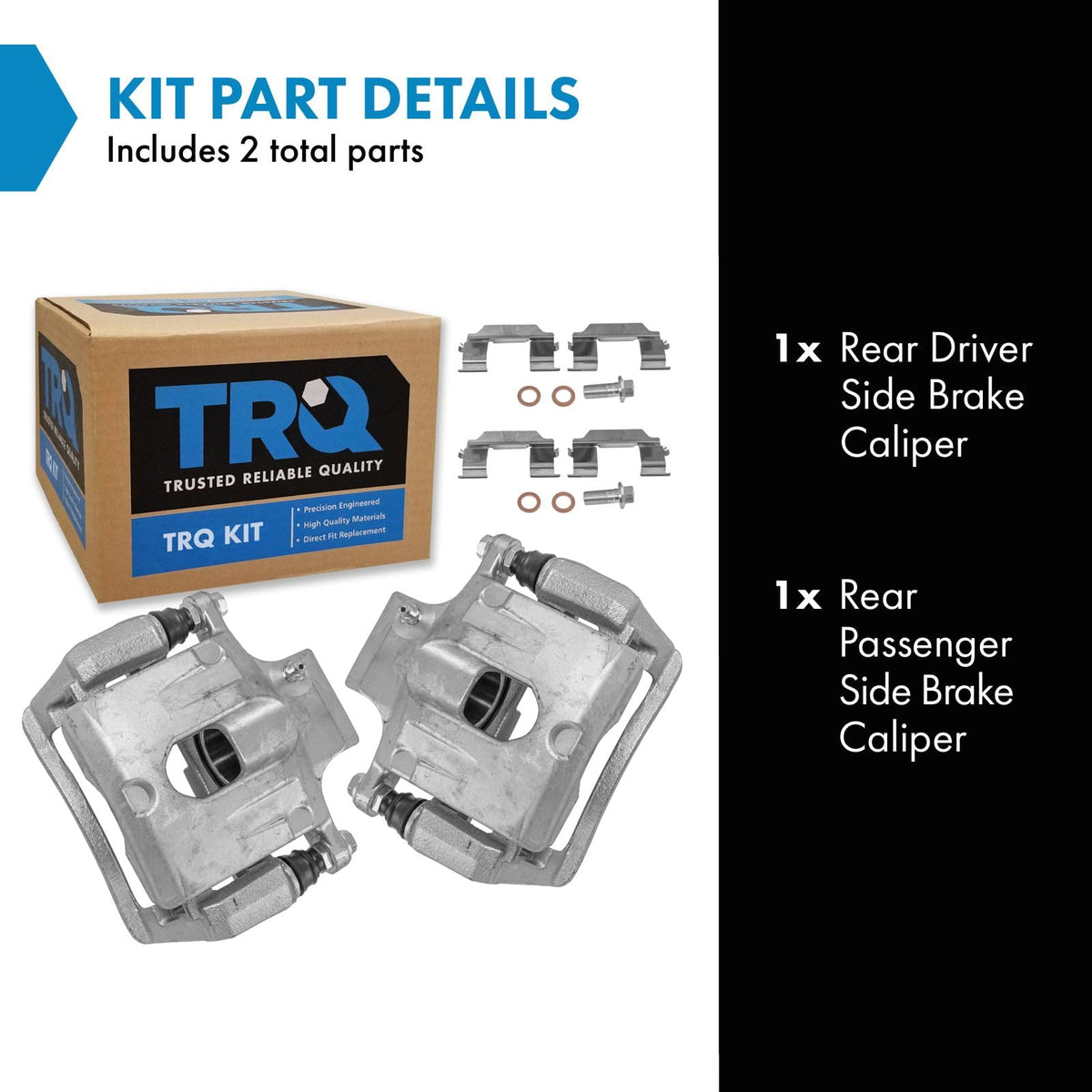 2 Piece Brake Caliper SetKit Includes(1) Rear Driver Side Brake Caliper(1) Rear Passenger Side Brake CaliperFitmentCompatible with: 2002-09 Chevrolet Trailblazer Rear Driver & Passenger SideCompatible with: 2002-09 GMC Envoy Rear Driver & Passenger SideCompatible with: 2002-06 Chevrolet Trailblazer EXT Rear Driver & Passenger SideCompatible with: 2002-06 GMC Envoy XL Rear Driver & Passenger SideCompatible with: 2004-07 Buick Rainier Rear Driver & Passenger SideCompatible with: 2003-06 Chevrolet SSR Rear Driver & Passenger SideCompatible with: 2004-05 GMC Envoy XUV Rear Driver & Passenger SideCompatible with: 2002-04 Olds Bravada Rear Driver & Passenger SideCompatible with: 2003-08 Isuzu Ascender Rear Driver & Passenger SideCompatible with: 2005-09 Saab 9-7X Rear Driver & Passenger SideProduct AttributesQuantity: 2 PieceIncludes: BracketIncludes: HardwareProduct Features High-Temperature EPDM Seals and Boots: Improved resistance to thermal deterioration Electrostatic High Heat Powder Coating: Resist rust and corrosion Racing-Grade Silicone Lubricant Hardware and Abutment Kit Included 100% New ComponentsItem DetailsTRQ brake calipers are made from premium raw materials designed to restore original performance. All TRQ calipers are new, so there will never be a core charge with your TRQ purchase. TRQ brake calipers include upgraded seals, washers, abutment kits and brackets where applicable to ensure a complete repair. TRQ recommends replacing your calipers in pairs with new brake pads and brake rotors to ensure components wear evenly and avoid multiple repairs of the same system. All products are fit and road-tested in our Massachusetts R&D facility to ensure we deliver on our promise of Trusted Reliable Quality.Reference NumbersACDelco: 18FR2079C, 18FR2080CBBB Industries: 99-17320L-C, 99-17320R-CCARDONE Reman: 18-B4804, 18-B4805DFC Calipers Outright Program - Archived: 331-48600, 331-48601Nugeon: 22-17320L, 22-17320RRaybestos Brakes: FRC11331, FRC11331N, FRC11332, FRC11332NUAP: C66507, C66508UCX: 14-4256, 14-4257