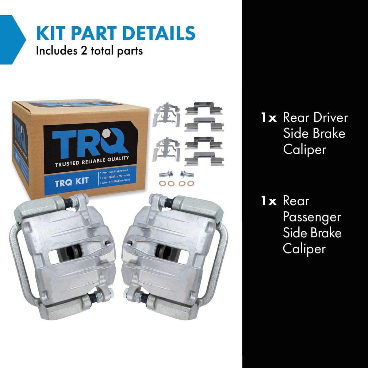 2 Piece Brake Caliper SetKit Includes(1) Rear Driver Side Brake Caliper(1) Rear Passenger Side Brake CaliperFitmentCompatible with: 2003-04 Chevrolet Silverado 1500 with 2 Wheel Steering without Performance Package Rear Driver & Passenger SideCompatible with: 2003-06 GMC Sierra 1500 with Single Piston Calipers Rear Driver & Passenger SideCompatible with: 2005 Chevrolet Silverado 1500 4 Wheel Drive 6400LB GVW Rear Driver & Passenger SideCompatible with: 2005 Chevrolet Silverado 1500 Rear Wheel Drive 6400LB GVW without Limited Slip Differential Rear Driver & Passenger SideCompatible with: 2006 Chevrolet Silverado 1500 with Single Piston Calipers Rear Driver & Passenger SideCompatible with: 2007 Chevrolet Silverado 1500 Classic Rear Driver & Passenger SideCompatible with: 2006-11 Cadillac DTS with 8 Lug Wheels with RPO Code J55 Heavy Duty Brakes Rear Driver & Passenger SideCompatible with: 2003-05 Cadillac Deville with 8 Lug Wheels with RPO Code J55 Heavy Duty Brakes Rear Driver & Passenger SideCompatible with: 2007 GMC Sierra 1500 Classic Rear Driver & Passenger SideProduct AttributesQuantity: 2 PieceIncludes: BracketIncludes: HardwareProduct Features High-Temperature EPDM Seals and Boots: Improved resistance to thermal deterioration Electrostatic High Heat Powder Coating: Resist rust and corrosion Racing-Grade Silicone Lubricant Hardware and Abutment Kit Included 100% New ComponentsItem DetailsTRQ brake calipers are made from premium raw materials designed to restore original performance. All TRQ calipers are new, so there will never be a core charge with your TRQ purchase. TRQ brake calipers include upgraded seals, washers, abutment kits and brackets where applicable to ensure a complete repair. TRQ recommends replacing your calipers in pairs with new brake pads and brake rotors to ensure components wear evenly and avoid multiple repairs of the same system. All products are fit and road-tested in our Massachusetts R&D facility to ensure we deliver on our promise of Trusted Reliable Quality.Reference NumbersACDelco: 18FR2085C, 18FR2086CBBB Industries: 99-17378L-C, 99-17378R-CCARDONE Reman: 18-B4854, 18-B4855DFC Calipers Outright Program - Archived: 331-47714, 331-47715Raybestos Brakes: FRC11359, FRC11359N, FRC11360, FRC11360NUAP: C66521, C66522