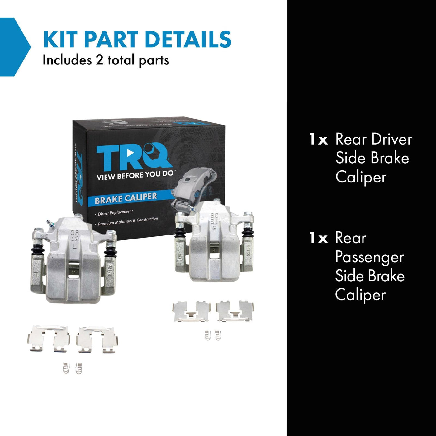 2 Piece Brake Caliper SetKit Includes(1) Rear Driver Side Brake Caliper(1) Rear Passenger Side Brake CaliperFitmentCompatible with: 2012-18 Toyota Rav4 Rear Driver & Passenger SideProduct AttributesQuantity: 2 PieceProduct Features Zinc Coated: Long lasting rust prevention EPDM Seals: Enhanced resistance to thermal deterioration No Core Charge: 100% new components Hardware and Abutment Kit Included: Complete repair in a single purchase Direct Replacement: No modifications necessaryItem DetailsTRQ brake calipers are made from premium raw materials designed to restore original performance. All TRQ calipers are new, so there will never be a core charge with your TRQ purchase. TRQ brake calipers include upgraded seals, washers, abutment kits and brackets where applicable to ensure a complete repair. TRQ recommends replacing your calipers in pairs with new brake pads and brake rotors to ensure components wear evenly and avoid multiple repairs of the same system. All products are fit and road-tested in our Massachusetts R&D facility to ensure we deliver on our promise of Trusted Reliable Quality.Reference NumbersCARDONE Reman: 19-B7048, 19-B7049DFC Calipers Outright Program - Archived: 331-76708, 331-76709Raybestos Brakes: FRC12995N, FRC12996NUAP: C44657, C44658