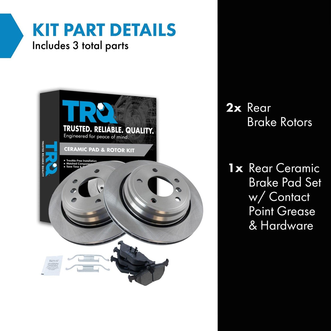 TRQ Rear Brake Pad & Rotor Kit Brake Pads Brake Rotor Ceramic Compatible with 2001-2003 BMW 525i 1997-2000 528i 530i 1997-2003 5