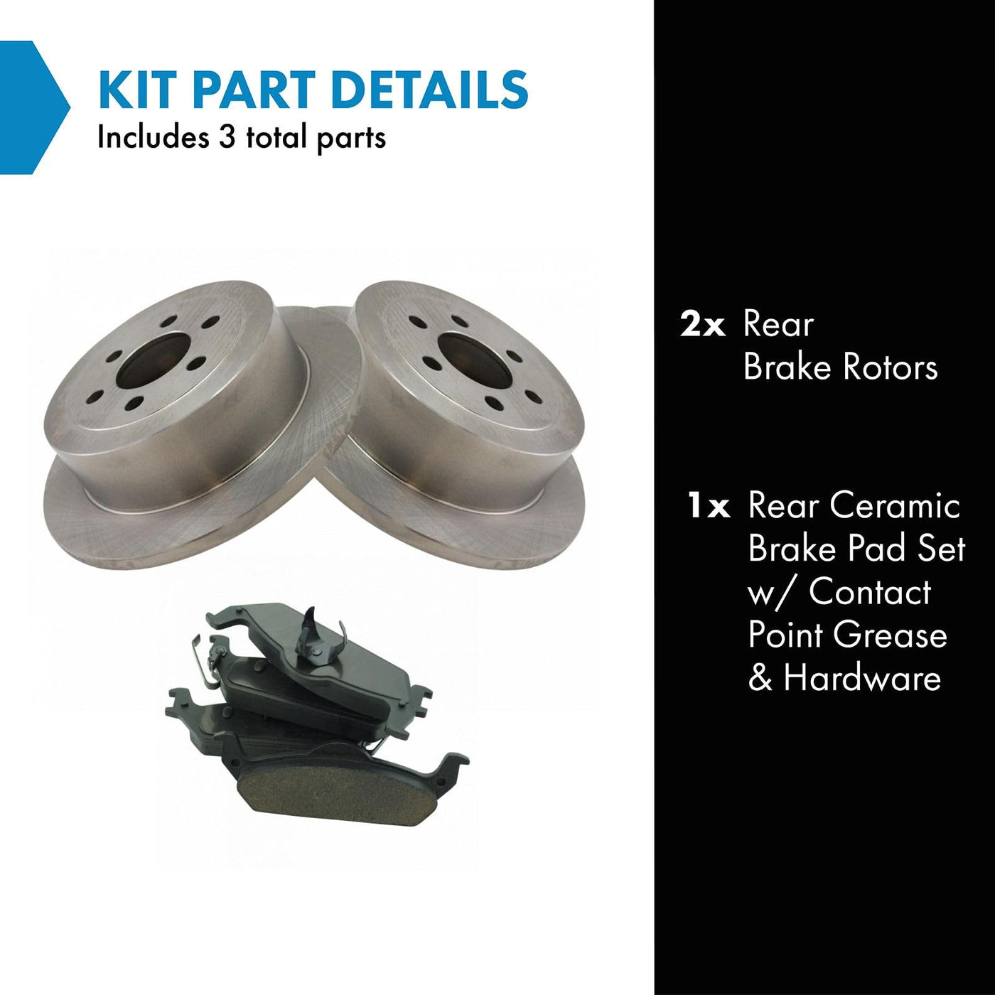 TRQ Rear Brake Pad & Rotor Kit Brake Pads Brake Rotor Ceramic Compatible with 2003-2004 Dodge Dakota
