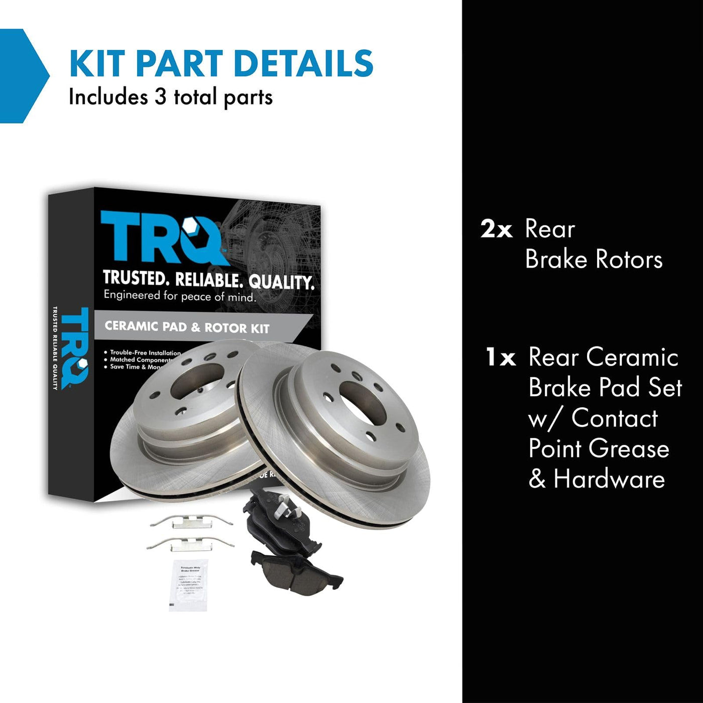 TRQ Rear Brake Pad & Rotor Kit Brake Pads Brake Rotor Ceramic Compatible with 2007-2013 BMW 328i 2009-2013 328i xDrive 2007-2008