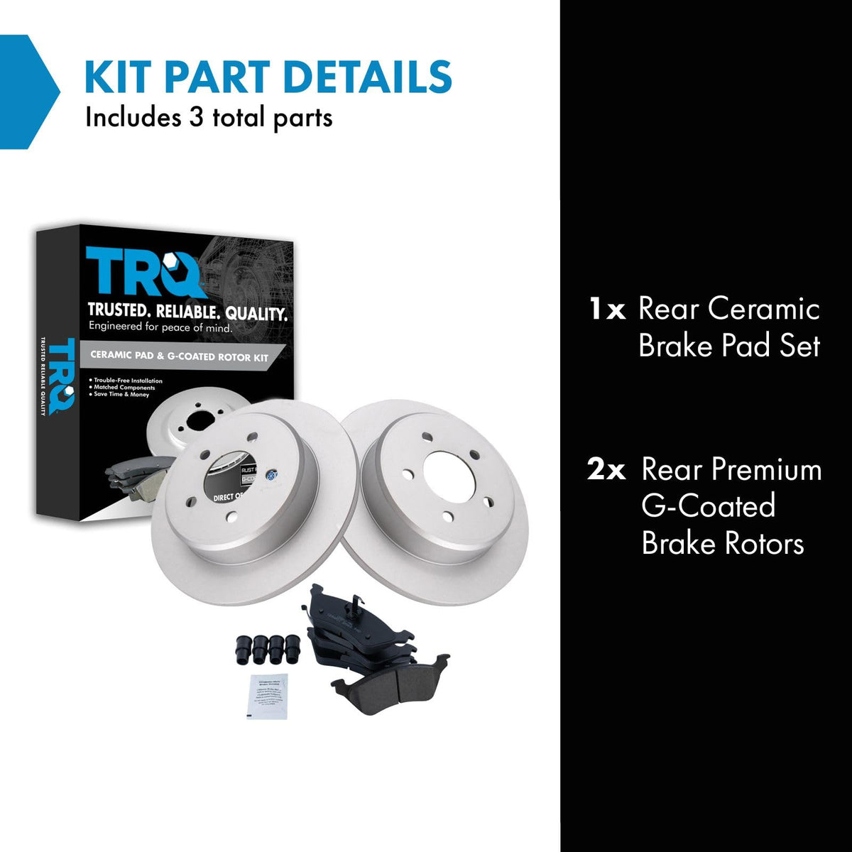Trq Rear Brake Pad & Rotor Kit Brake Pads Brake Rotor Ceramic Premium G-Coated Compatible With 2001-2007 Chrysler Town & Country