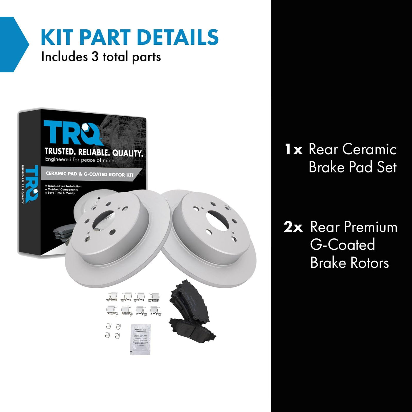Trq Rear Brake Pad & Rotor Kit Brake Pads Brake Rotor Ceramic Premium G-Coated Compatible With 2016-2019 Toyota Mirai 2012-2017