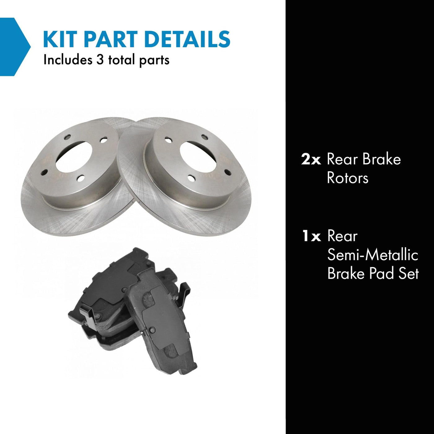 Trq Rear Brake Pad & Rotor Kit Brake Pads Brake Rotor Semi-Metallic Compatible With 1991-2001 Infiniti G20 1993-2001 Nissan Alti
