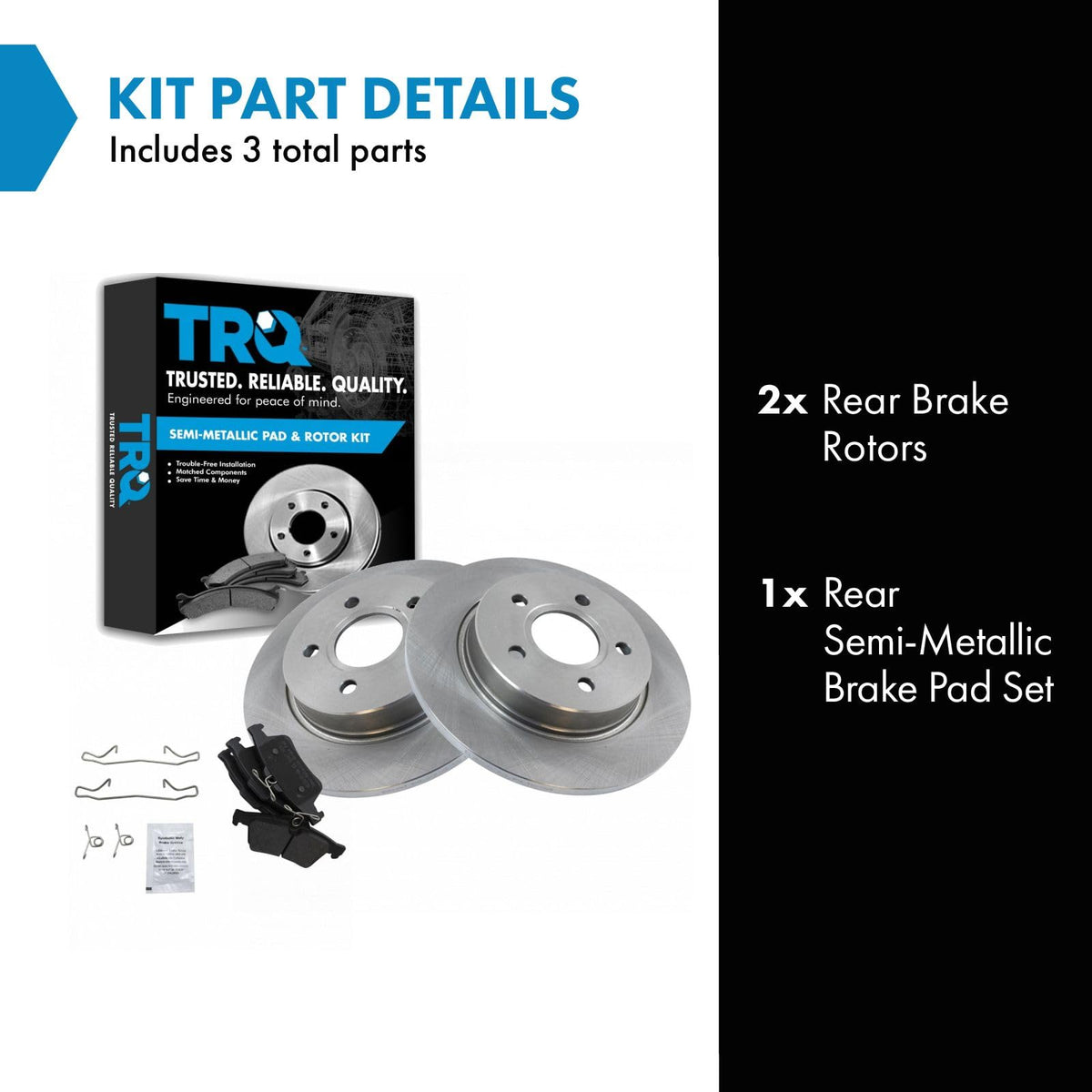 Trq Rear Brake Pad & Rotor Kit Brake Pads Brake Rotor Semi-Metallic Compatible With 2012-2018 Ford Focus