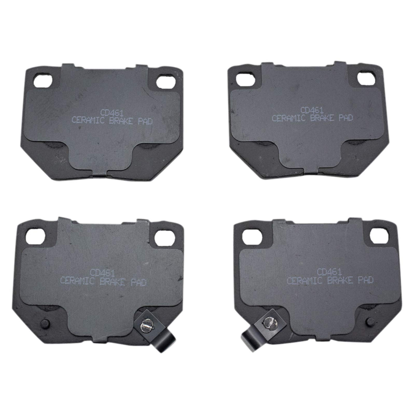 Ceramic Brake PadsFitmentCompatible with: 2006-07 Subaru Impreza WRX RearCompatible with: 1990-96 Nissan 300ZX RearProduct AttributesInner Pad Friction Material Thickness: 0.59 inOuter Pad Friction Material Thickness: 0.59 inOuter Pad Overall Thickness: 0.63 inInner Pad Overall Thickness: 0.63 inOuter Pad Friction Material Thickness: 15 mmInner Pad Friction Material Thickness: 15 mmOuter Pad Overall Thickness: 16 mmInner Pad Overall Thickness: 16 mmOuter Pad Width: 2.17 inInner Pad Width: 2.17 inOuter Pad Height: 2.87 inInner Pad Height: 2.87 inPad Quantity: 4Outer Pad Width: 55 mmInner Pad Width: 55 mmOuter Pad Height: 73 mmInner Pad Height: 73 mmBacking Plate Color: BlackPad Shim Color: BlackFriction Material Attachment: BondedFriction Material Composition: CeramicPad Wear Sensor Type: MechanicalBetter Brakes Law SAE Environmental Compliance Level: NBolts Included: NoECE-R90 Certified: NoMounting Hardware Included: NoFriction Surface Scorched: NoAbutment Clips Included: NoPad Shim Material: R-S-RGrade Type: RegularBacking Material: SteelWear Indicator Attached: YesSlotted: YesBrake Lubricant Included: YesPad Shims Included: YesPad Wear Sensor Included: YesChamfered Edges: YesPrepared For Pad Wear Sensor: YesBrake Pad Friction Material: CeramicIncludes: Contact Point GreaseBrake Pad Bonding Type: Premium PosiProduct Features Positive Molded: Less dust resulting in clean wheels Thermal Scorched: Improved stopping performance Application Specific Design: Extended service life, no modifications Environmentally Compliant: Meets all Better Brake Law standardsItem DetailsTRQ brake pads are manufactured using premium raw materials and design standards to restore original performance. TRQ brake pads are positive molded and utilize a multi-layer shim for enhanced performance and service life. TRQs combination of materials and design ensures a low dust and low noise braking experience. TRQ recommends replacing your brake rotors when you replace your brake pads to ensure even wear of components and improved braking comfort. All products are fit and road-tested in our Massachusetts R&D facility to ensure we deliver on our promise of Trusted Reliable Quality.Reference NumbersNissan: 4406006P90, 4406043P85Raybestos Brakes: PGD461MSubaru: 26696FE070