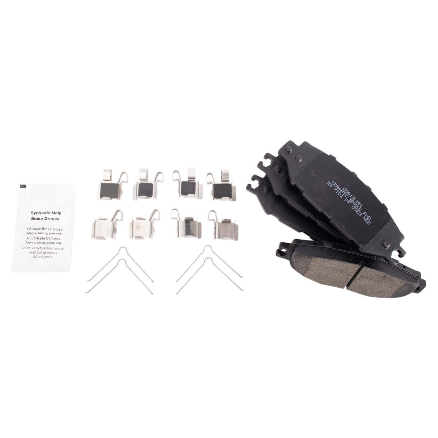 Item specifications:Brake Pad Friction Material: CeramicBrake Pad Bonding Type: Premium PosiIncludes: Hardware, Contact Point GreaseProduct Features Positive Molded: Less dust resulting in clean wheels Thermal Scorched: Improved stopping performance Application Specific Design: Extended service life, no modifications Hardware and grease included for a complete repair Environmentally Compliant: Meets all Better Brake Law standardsTRQ brake pads are manufactured using premium raw materials and design standards to restore original performance. TRQ brake pads are positive molded and utilize a multi-layer backing plate for enhanced performance and service life. TRQs combination of materials and design ensures a low dust and low noise braking experience. TRQ recommends replacing your brake rotors when you replace your brake pads to ensure even wear of components and improved braking comfort. All products are fit and road-tested in our Massachusetts R&D facility to ensure we deliver on our promise of Trusted Reliable Quality.Compatible with: 1993-00 Lexus LS400 Rear