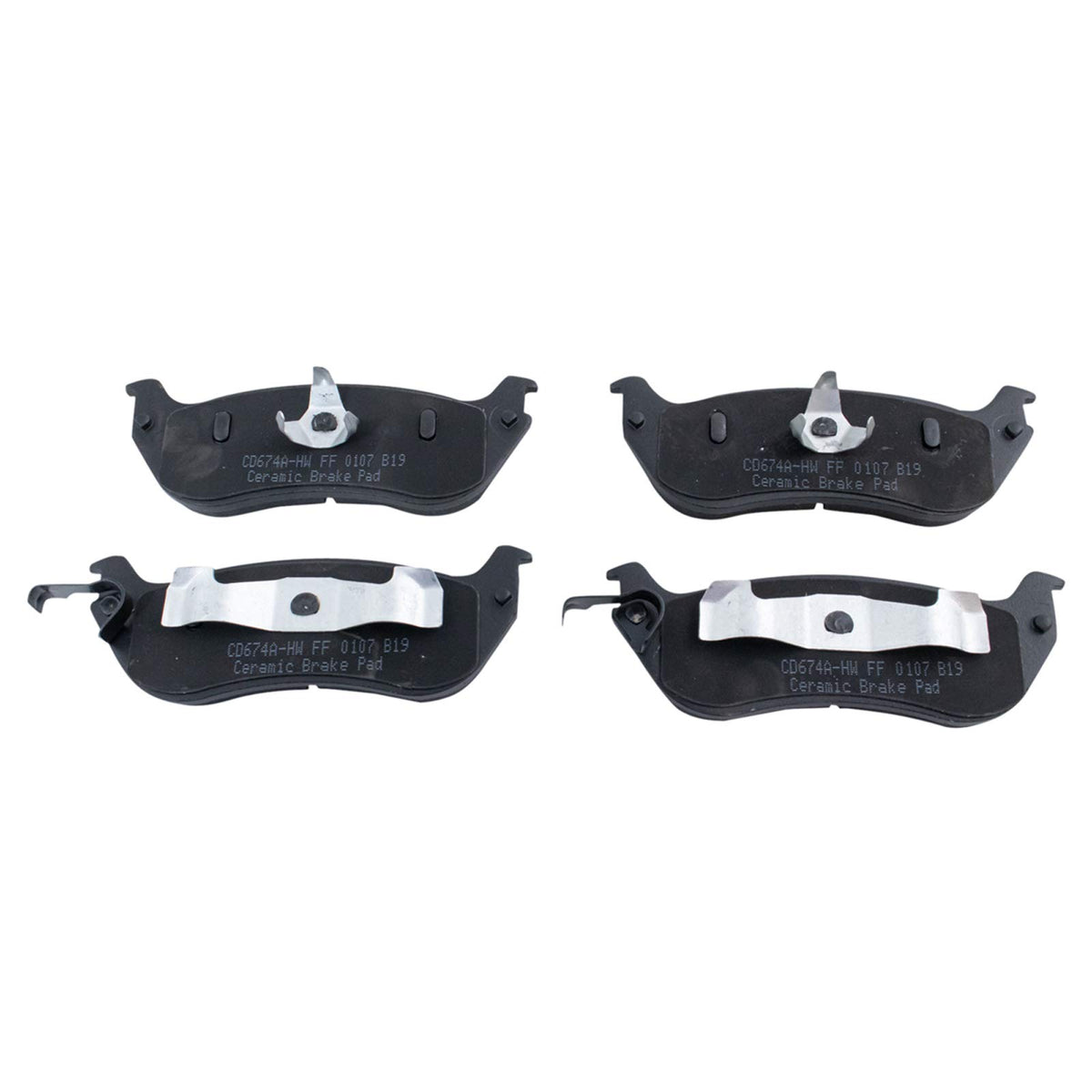 Ceramic Brake PadsFitmentCompatible with: 1996-02 Mercury Grand Marquis with Rear Phenolic Piston Calipers with 1 Inch Pad Clip RearCompatible with: 1996-02 Lincoln Town Car with Rear Phenolic Piston Calipers with 1 Inch Pad Clip RearCompatible with: 1996-02 Ford Crown Victoria with Rear Phenolic Piston Calipers with 1 Inch Pad Clip RearProduct AttributesInner Pad Friction Material Thickness: 0.59 inOuter Pad Friction Material Thickness: 0.59 inInner Pad Overall Thickness: 0.63 inOuter Pad Overall Thickness: 0.63 inOuter Pad Width: 1.93 inInner Pad Width: 1.93 inInner Pad Height: 141 mmOuter Pad Height: 141 mmInner Pad Friction Material Thickness: 15 mmOuter Pad Friction Material Thickness: 15 mmOuter Pad Overall Thickness: 16 mmInner Pad Overall Thickness: 16 mmPad Quantity: 4Inner Pad Width: 49 mmOuter Pad Width: 49 mmOuter Pad Height: 5.55 inInner Pad Height: 5.55 inPad Shim Color: BlackBacking Plate Color: BlackFriction Material Attachment: BondedFriction Material Composition: CeramicPad Wear Sensor Type: MechanicalBetter Brakes Law SAE Environmental Compliance Level: NBolts Included: NoFriction Surface Scorched: NoMounting Hardware Included: NoECE-R90 Certified: NoPad Shim Material: R-S-RGrade Type: RegularBacking Material: SteelWear Indicator Attached: YesPad Shims Included: YesChamfered Edges: YesPrepared For Pad Wear Sensor: YesBrake Lubricant Included: YesSlotted: YesAbutment Clips Included: YesPad Wear Sensor Included: YesBrake Pad Friction Material: CeramicIncludes: Contact Point GreaseIncludes: HardwareBrake Pad Bonding Type: Premium PosiProduct Features Positive Molded: Less dust resulting in clean wheels Thermal Scorched: Improved stopping performance Application Specific Design: Extended service life, no modifications Hardware and grease included for a complete repair Environmentally Compliant: Meets all Better Brake Law standardsItem DetailsTRQ brake pads are manufactured using premium raw materials and design standards to restore original performance. TRQ brake pads are positive molded and utilize a multi-layer shim for enhanced performance and service life. TRQs combination of materials and design ensures a low dust and low noise braking experience. TRQ recommends replacing your brake rotors when you replace your brake pads to ensure even wear of components and improved braking comfort. All products are fit and road-tested in our Massachusetts R&D facility to ensure we deliver on our promise of Trusted Reliable Quality.Reference NumbersRaybestos Brakes: EHT674AH