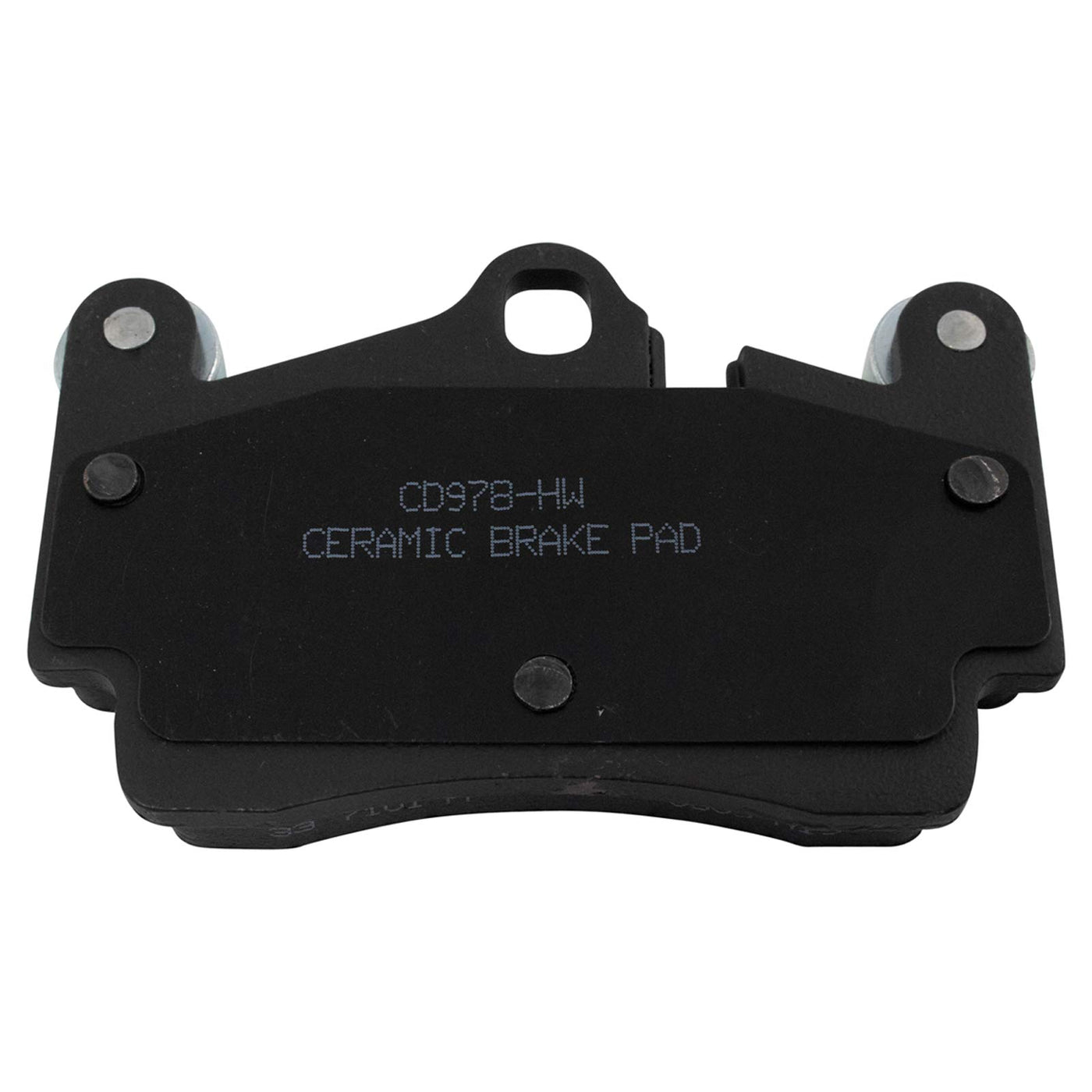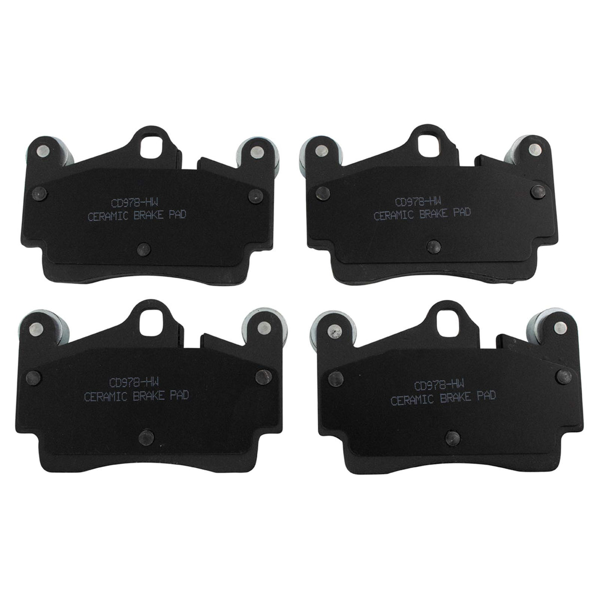 Ceramic Brake PadsFitmentCompatible with: 2007-15 Audi Q7 RearCompatible with: 2003-06 Porsche Cayenne RearCompatible with: 2008-10 Porsche Cayenne S RearCompatible with: 2008-10 Porsche Cayenne Base Model RearCompatible with: 2008-10 Porsche Cayenne GTS RearCompatible with: 2006-09 VW Touareg with 4 Piston Rear Calipers RearCompatible with: 2004-05 VW Touareg RearCompatible with: 2010 Porsche Cayenne S Transsyberia RearCompatible with: 2010 VW Touareg with Dual Piston Rear Calipers RearProduct AttributesInner Pad Friction Material Thickness: 0.59 inOuter Pad Friction Material Thickness: 0.59 inInner Pad Overall Thickness: 0.59 inOuter Pad Overall Thickness: 0.59 inInner Pad Height: 112 mmOuter Pad Height: 112 mmOuter Pad Friction Material Thickness: 15 mmInner Pad Friction Material Thickness: 15 mmOuter Pad Overall Thickness: 15 mmInner Pad Overall Thickness: 15 mmInner Pad Width: 2.87 inOuter Pad Width: 2.87 inPad Quantity: 4Outer Pad Height: 4.41 inInner Pad Height: 4.41 inInner Pad Width: 73 mmOuter Pad Width: 73 mmPad Shim Color: BlackBacking Plate Color: BlackFriction Material Attachment: BondedFriction Material Composition: CeramicBetter Brakes Law SAE Environmental Compliance Level: NPad Wear Sensor Included: NoMounting Hardware Included: NoWear Indicator Attached: NoPrepared For Pad Wear Sensor: NoBolts Included: NoFriction Surface Scorched: NoECE-R90 Certified: NoPad Shim Material: R-S-RGrade Type: RegularBacking Material: SteelChamfered Edges: YesAbutment Clips Included: YesBrake Lubricant Included: YesPad Shims Included: YesSlotted: YesBrake Pad Friction Material: CeramicIncludes: Contact Point GreaseIncludes: HardwareBrake Pad Bonding Type: Premium PosiProduct Features Positive Molded: Less dust resulting in clean wheels Thermal Scorched: Improved stopping performance Application Specific Design: Extended service life, no modifications Hardware and grease included for a complete repair Environmentally Compliant: Meets all Better Brake Law standardsItem DetailsTRQ brake pads are manufactured using premium raw materials and design standards to restore original performance. TRQ brake pads are positive molded and utilize a multi-layer shim for enhanced performance and service life. TRQs combination of materials and design ensures a low dust and low noise braking experience. TRQ recommends replacing your brake rotors when you replace your brake pads to ensure even wear of components and improved braking comfort. All products are fit and road-tested in our Massachusetts R&D facility to ensure we deliver on our promise of Trusted Reliable Quality.Reference NumbersAudi: 7L0698451B, 7L0698451G, 7L0698451HPorsche: 95535293901, 95535293902, 95535293903Raybestos Brakes: PGD978MVolkswagen: 7L0698451A, 7L0698451B, 7L6698451D