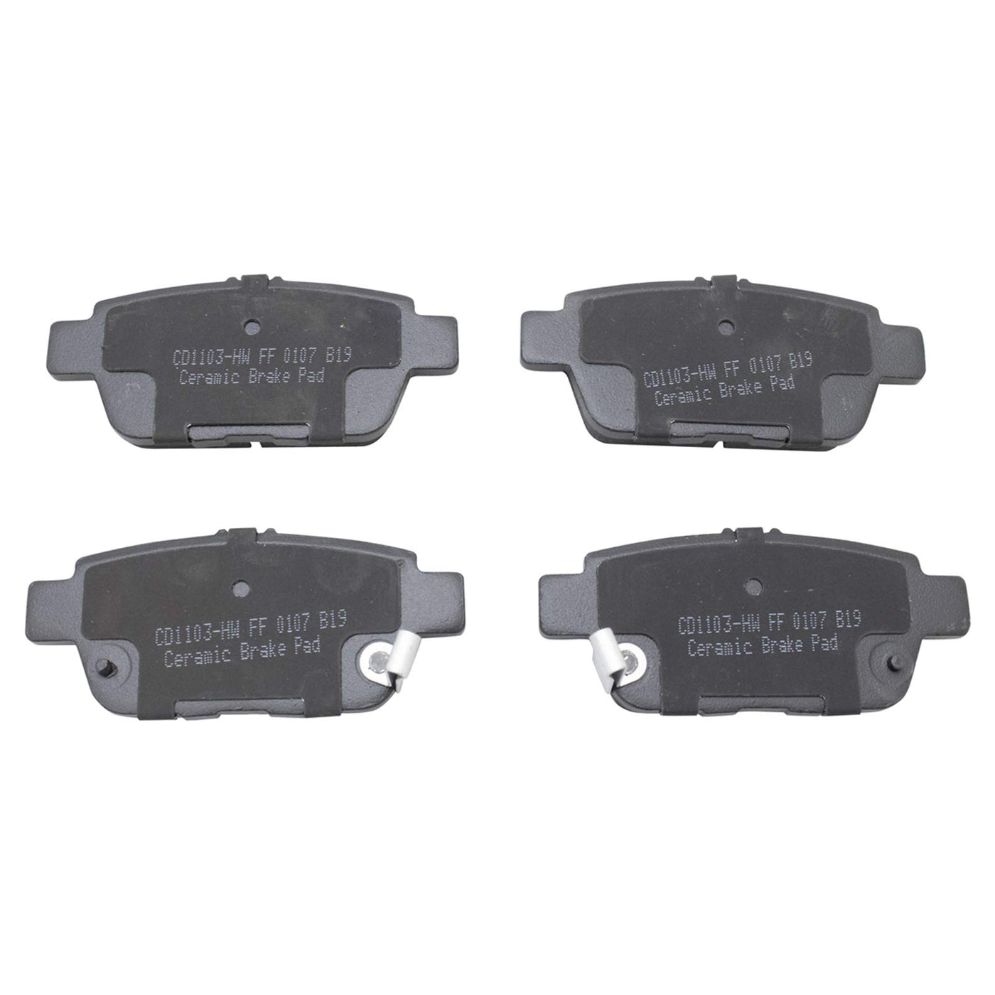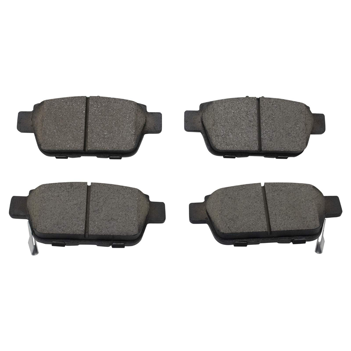 Ceramic Brake PadsFitmentCompatible with: 2006-14 Honda Ridgeline RearCompatible with: 2009-14 Acura TL RearProduct AttributesInner Pad Friction Material Thickness: 0.35 inOuter Pad Friction Material Thickness: 0.35 inOuter Pad Overall Thickness: 0.59 inInner Pad Overall Thickness: 0.59 inOuter Pad Height: 1.93 inInner Pad Height: 1.93 inOuter Pad Width: 113 mmInner Pad Width: 113 mmOuter Pad Overall Thickness: 15 mmInner Pad Overall Thickness: 15 mmPad Quantity: 4Outer Pad Width: 4.45 inInner Pad Width: 4.45 inOuter Pad Height: 49 mmInner Pad Height: 49 mmInner Pad Friction Material Thickness: 9 mmOuter Pad Friction Material Thickness: 9 mmBacking Plate Color: BlackPad Shim Color: BlackFriction Material Composition: CeramicPad Shim Material: FiberFriction Material Attachment: Integrally MoldedPad Wear Sensor Type: MechanicalBetter Brakes Law SAE Environmental Compliance Level: NAbutment Clips Included: NoBolts Included: NoBacking Material: SteelWear Indicator Attached: YesPad Shims Included: YesPad Wear Sensor Included: YesBrake Lubricant Included: YesChamfered Edges: YesPrepared For Pad Wear Sensor: YesMounting Hardware Included: YesSlotted: YesFriction Surface Scorched: YesBrake Pad Friction Material: CeramicIncludes: Contact Point GreaseIncludes: HardwareBrake Pad Bonding Type: Premium PosiProduct Features Positive Molded: Less dust resulting in clean wheels Thermal Scorched: Improved stopping performance Application Specific Design: Extended service life, no modifications Hardware and grease included for a complete repair Environmentally Compliant: Meets all Better Brake Law standardsItem DetailsTRQ brake pads are manufactured using premium raw materials and design standards to restore original performance. TRQ brake pads are positive molded and utilize a multi-layer shim for enhanced performance and service life. TRQs combination of materials and design ensures a low dust and low noise braking experience. TRQ recommends replacing your brake rotors when you replace your brake pads to ensure even wear of components and improved braking comfort. All products are fit and road-tested in our Massachusetts R&D facility to ensure we deliver on our promise of Trusted Reliable Quality.Reference NumbersAcura: 43022TK4A00Honda: 43022SJCA00, 43022SJCA50, 43022TK4A00Raybestos Brakes: EHT1103H, MGD1103CH, SGD1103C