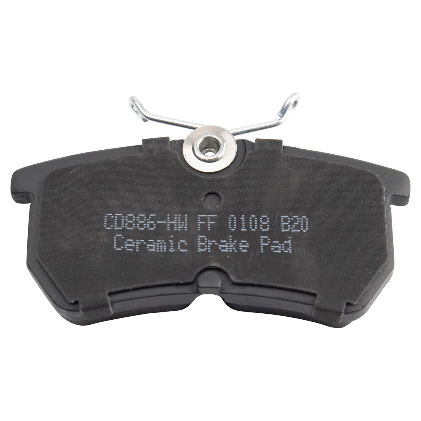 Ceramic Brake PadsFitmentCompatible with: 2001-07 Ford Focus RearCompatible with: 2014-19 Ford Fiesta ST RearProduct AttributesInner Pad Friction Material Thickness: 0.31 inOuter Pad Friction Material Thickness: 0.31 inOuter Pad Overall Thickness: 0.51 inInner Pad Overall Thickness: 0.51 inOuter Pad Height: 1.69 inInner Pad Height: 1.69 inOuter Pad Overall Thickness: 13 mmInner Pad Overall Thickness: 13 mmOuter Pad Width: 3.43 inInner Pad Width: 3.43 inPad Quantity: 4Outer Pad Height: 43 mmInner Pad Height: 43 mmInner Pad Friction Material Thickness: 8 mmOuter Pad Friction Material Thickness: 8 mmOuter Pad Width: 87 mmInner Pad Width: 87 mmBacking Plate Color: BlackPad Shim Color: BlackFriction Material Composition: CeramicPad Shim Material: FiberFriction Material Attachment: Integrally MoldedBetter Brakes Law SAE Environmental Compliance Level: NPad Wear Sensor Included: NoBolts Included: NoAbutment Clips Included: NoBacking Material: SteelPad Shims Included: YesFriction Surface Scorched: YesMounting Hardware Included: YesSlotted: YesBrake Lubricant Included: YesChamfered Edges: YesBrake Pad Friction Material: CeramicIncludes: Contact Point GreaseIncludes: HardwareBrake Pad Bonding Type: Premium PosiProduct Features Positive Molded: Less dust resulting in clean wheels Thermal Scorched: Improved stopping performance Application Specific Design: Extended service life, no modifications Hardware and grease included for a complete repair Environmentally Compliant: Meets all Better Brake Law standardsItem DetailsTRQ brake pads are manufactured using premium raw materials and design standards to restore original performance. TRQ brake pads are positive molded and utilize a multi-layer shim for enhanced performance and service life. TRQs combination of materials and design ensures a low dust and low noise braking experience. TRQ recommends replacing your brake rotors when you replace your brake pads to ensure even wear of components and improved braking comfort. All products are fit and road-tested in our Massachusetts R&D facility to ensure we deliver on our promise of Trusted Reliable Quality.Reference NumbersFord: 1S4Z2200BA, C1BZ2200ARaybestos Brakes: PGD886M