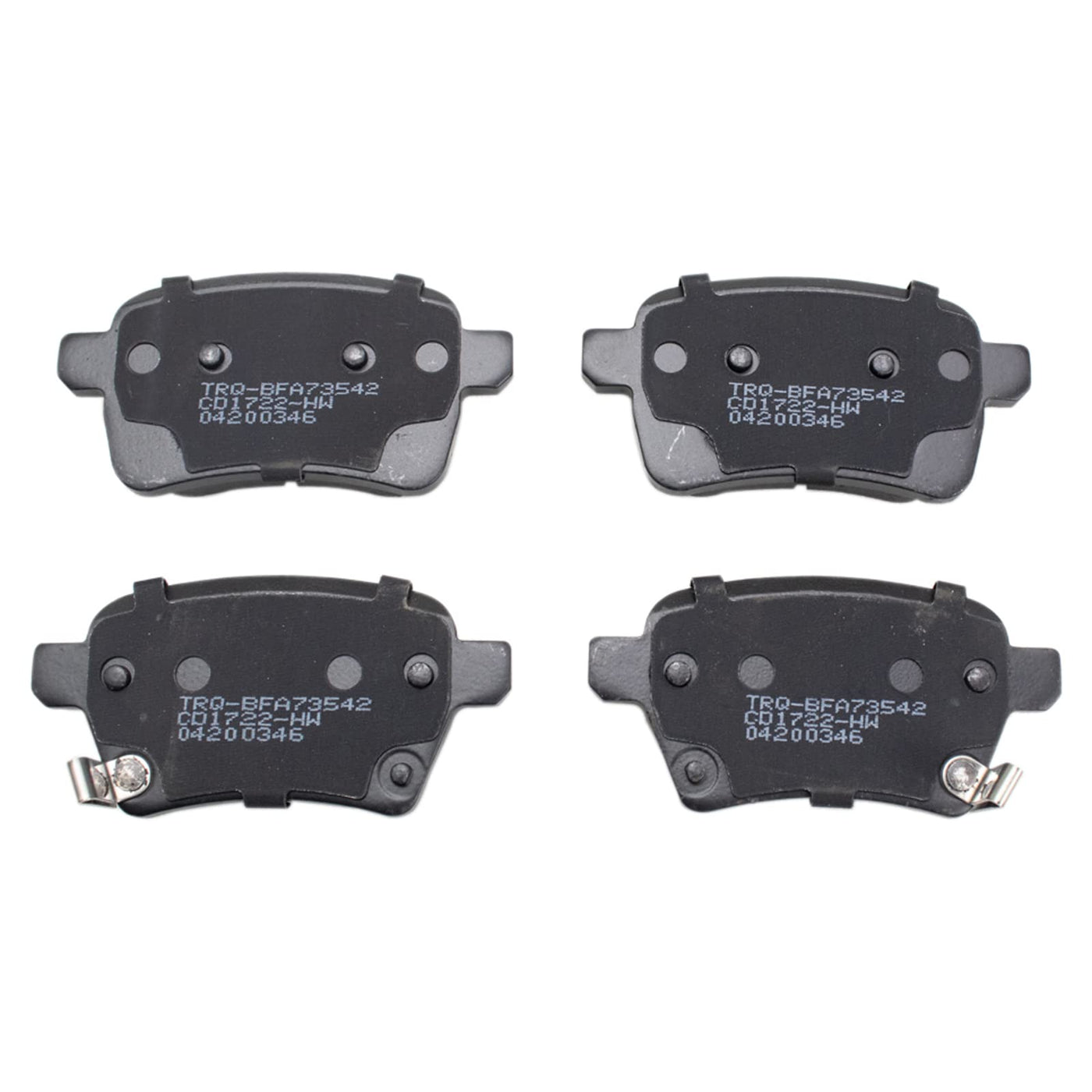 Item specifications:Brake Pad Friction Material: CeramicBrake Pad Bonding Type: Premium PosiIncludes: Hardware, Contact Point GreaseProduct Features Positive Molded: Less dust resulting in clean wheels Thermal Scorched: Improved stopping performance Application Specific Design: Extended service life, no modifications Hardware and grease included for a complete repair Environmentally Compliant: Meets all Better Brake Law standardsTRQ brake pads are manufactured using premium raw materials and design standards to restore original performance. TRQ brake pads are positive molded and utilize a multi-layer backing plate for enhanced performance and service life. TRQs combination of materials and design ensures a low dust and low noise braking experience. TRQ recommends replacing your brake rotors when you replace your brake pads to ensure even wear of components and improved braking comfort. All products are fit and road-tested in our Massachusetts R&D facility to ensure we deliver on our promise of Trusted Reliable Quality.Compatible with: 2014-20 Fiat 500L Rear