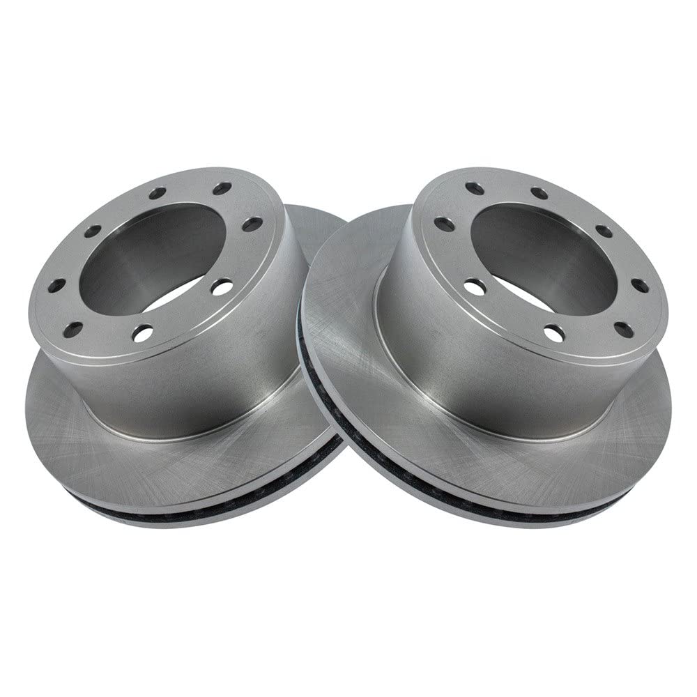 2 Piece Brake Rotor SetKit Includes(1) Rear Driver Side Brake Rotor(1) Rear Passenger Side Brake RotorFitmentCompatible with: 2005-12 Ford F250 Super Duty Truck Rear Driver & Passenger SideCompatible with: 2005-12 Ford F350 Super Duty Truck with Single Rear Wheels SRW Rear Driver & Passenger SideProduct AttributesMounting Bolt Hole Diameter: 0.65 inDiscard Thickness: 1.30 inNominal Thickness: 1.34 inOverall Height: 126 mmCenter Hole Diameter: 127 mmOutside Diameter: 13.39 inMounting Bolt Hole Circle Diameter: 170 mmDiscard Thickness: 33 mmNominal Thickness: 34 mmOutside Diameter: 340 mmOverall Height: 4.96 inCenter Hole Diameter: 5.00 inMounting Bolt Hole Circle Diameter: 6.69 inStud/Lug Hole Quantity: 8Material: Cast IronConventional Or Drum-In-Hat Type Rotor: Drum-In-HatRust Resistant Coating: NoABS Tone Ring Included: NoGrade Type: RegularSurface Type: SmoothSolid Or Vented Type Rotor: VentedRear Brake Rotor Diameter: 13.39 in. (340mm)Quantity: 2 PieceWheel Lug Count: 8 LugRaces Included: NoBrake Rotor Venting Type: VentedProduct Features Direct Replacement: No modifications necessary G3000 Casting Alloy: Reduced noise and improved durability Non-Directional Surface Finish: Reduced vibrationsItem DetailsTRQ brake rotors are manufactured using premium G3000 casting alloy to reduce noise while braking and enhance service life. TRQ rotors have a non-directional finish to minimize the break-in period for new rotors and reduce vibrations throughout the rotors lifecycle. TRQ recommends replacing brake pads when you replace rotors to ensure even wear and improved component performance. All products are fit and road-tested in our Massachusetts R&D facility to ensure we deliver on our promise of Trusted Reliable Quality.Reference NumbersAimco: 54141Bendix: PRT5730DuraGo: BR54141Hollander: 533-02482Raybestos Brakes: 680394, 680394FZN, 680394P, 680394PER, 680394RWagner: BD126274
