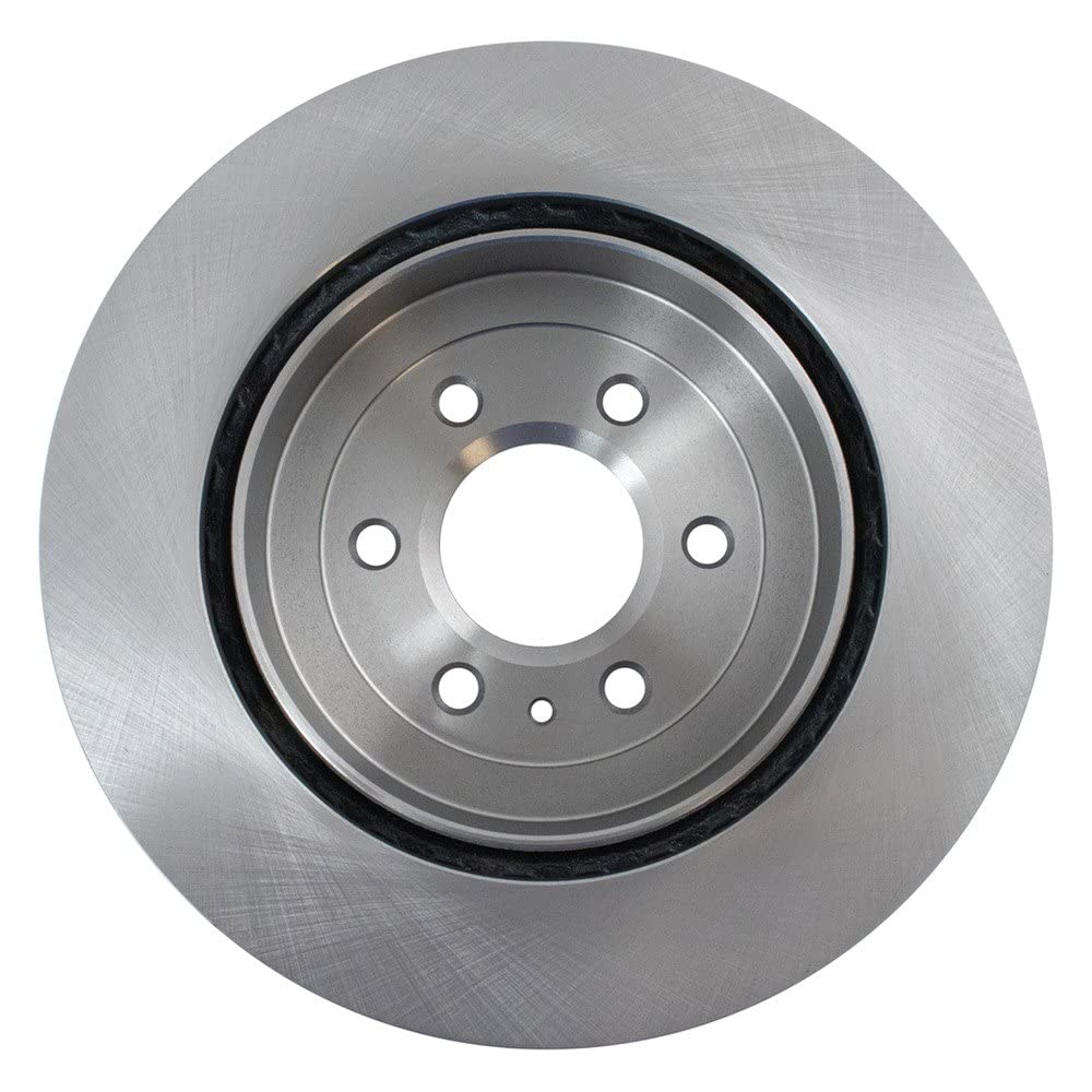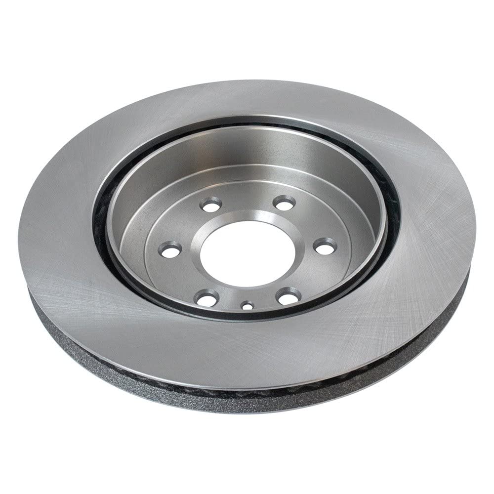 2 Piece Brake Rotor SetKit Includes(1) Rear Driver Side Brake Rotor(1) Rear Passenger Side Brake RotorFitmentCompatible with: 2004-09 Cadillac SRX Rear Driver & Passenger SideProduct AttributesMounting Bolt Hole Diameter: 0.51 inDiscard Thickness: 0.94 inNominal Thickness: 1.02 inOverall Height: 1.88 inMounting Bolt Hole Circle Diameter: 115 mmOutside Diameter: 12.60 inMounting Bolt Hole Diameter: 13 mmCenter Hole Diameter: 2.80 inDiscard Thickness: 24 mmNominal Thickness: 26 mmOutside Diameter: 320 mmMounting Bolt Hole Circle Diameter: 4.53 inStud/Lug Hole Quantity: 6Center Hole Diameter: 71 mmMaterial: Cast IronConventional Or Drum-In-Hat Type Rotor: Drum-In-HatABS Tone Ring Included: NoRust Resistant Coating: NoGrade Type: RegularSurface Type: SmoothSolid Or Vented Type Rotor: VentedQuantity: 2 PieceWheel Lug Count: 6 LugRaces Included: NoBrake Rotor Venting Type: VentedProduct Features Direct Replacement: No modifications necessary G3000 Casting Alloy: Reduced noise and improved durability Non-Directional Surface Finish: Reduced vibrationsItem DetailsTRQ brake rotors are manufactured using premium G3000 casting alloy to reduce noise while braking and enhance service life. TRQ rotors have a non-directional finish to minimize the break-in period for new rotors and reduce vibrations throughout the rotors lifecycle. TRQ recommends replacing brake pads when you replace rotors to ensure even wear and improved component performance. All products are fit and road-tested in our Massachusetts R&D facility to ensure we deliver on our promise of Trusted Reliable Quality.Reference NumbersAimco: 55114Bendix: PRT5772DuraGo: BR900374Hollander: 533-02459Raybestos Brakes: 580260, 580260FZN, 580260P, 580260RWagner: BD126285