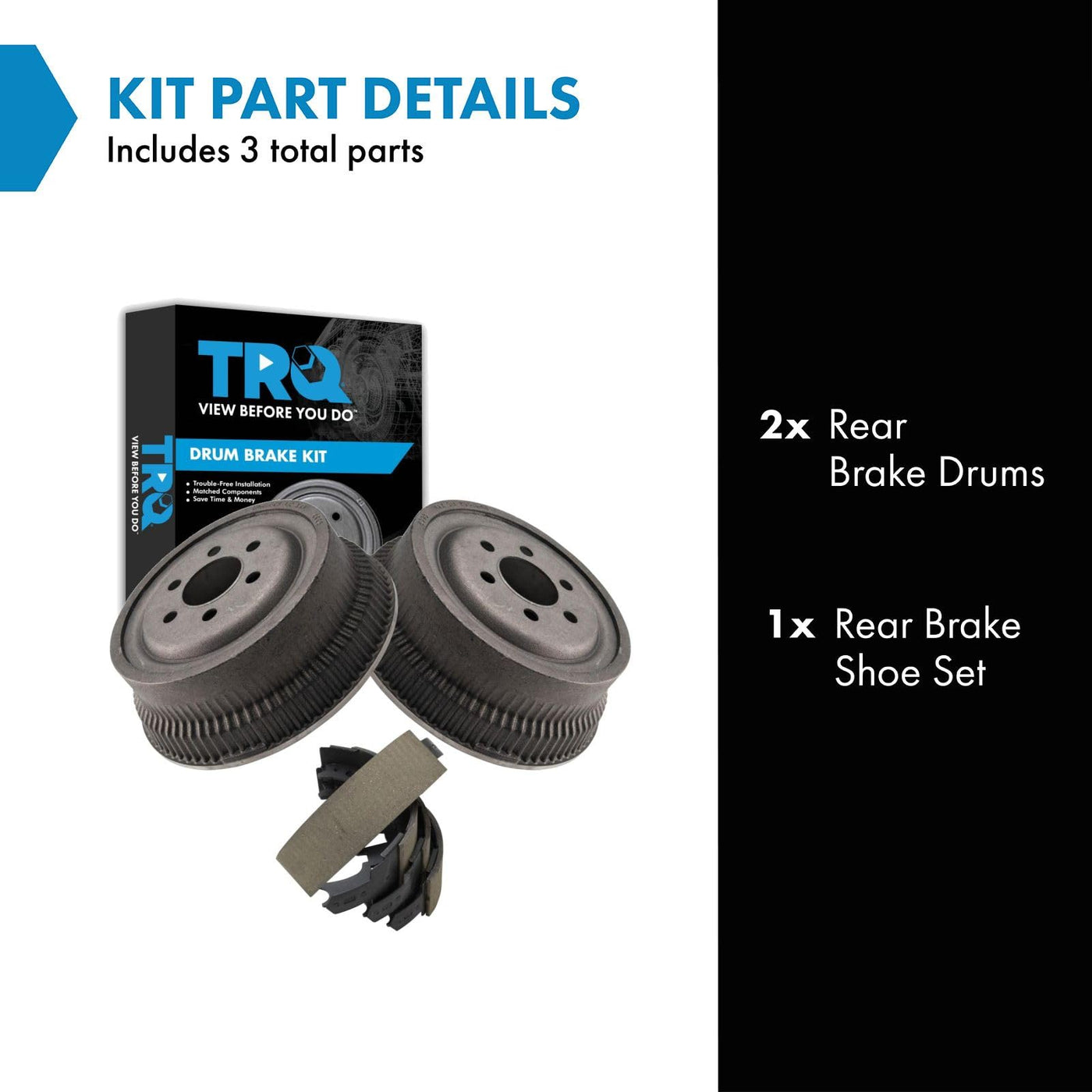 TRQ Rear Brake Shoe Pad & 10 Inch Brake Drum Pair Set Kit LH & RH Compatible with Dakota