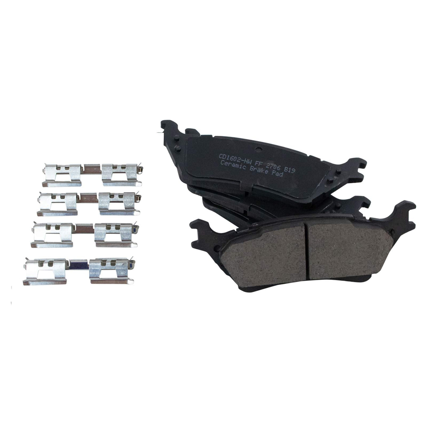 Ceramic Brake Pad & Rotor KitKit Includes(1) Rear Ceramic Brake Pad Set(2) Rear Premium G-Coated Brake RotorsFitmentCompatible with: 2012-14 Ford F150 Truck with 6 Lug Wheels Rear Ceramic Premium G-Coated Brake Pad & Rotor KitCompatible with: 2015-18 Ford F150 Truck Rear with Manual Parking Brake Ceramic Premium G-Coated Brake Pad & Rotor KitProduct AttributesBrake Rotor Diameter: 13.70 in. (348mm)Wheel Lug Count: 6 LugBrake Pad Friction Material: CeramicBrake Rotor Coating: Premium G-CoatedBrake Pad Bonding Type: Premium PosiBrake Rotor Venting Type: VentedProduct Features Positive Molded: Less dust resulting in clean wheels Electrostatic Coated: Long-lasting rust protection G3000 Casting Alloy: Reduced noise and improved wear resistance Application Specific Design: Extended service life, no modificationsItem DetailsTRQ brake kits are designed to restore your brake system to like-new performance. TRQ brake pads are positive molded, thermal scorched, chamfered, and utilize a multi-layer shim for enhanced performance and service life. TRQ G-coated rotors have long-lasting rust prevention, perfect for wheels with large openings that expose the rotor and rotor hat during daily drives. All products are fit and road-tested in our Massachusetts R&D facility to ensure we deliver on our promise of Trusted Reliable Quality.Reference NumbersAamco: 54186Aimco: 54186Ford: CL3Z2200A, CL3Z2200B, CL3Z2200C, FL3Z2200BRaybestos Brakes: EHT1602H, MGD1602CH