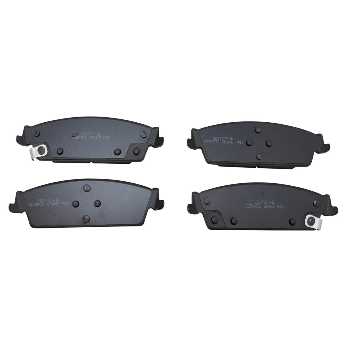 Ceramic Brake PadsFitmentCompatible with: 2014-18 Chevrolet Silverado 1500 RearCompatible with: 2014-18 GMC Sierra 1500 RearCompatible with: 2015-20 Chevrolet Tahoe RearCompatible with: 2015-20 Chevrolet Suburban RearCompatible with: 2015-20 GMC Yukon RearCompatible with: 2015-20 GMC Yukon XL RearCompatible with: 2015-20 Cadillac Escalade RearCompatible with: 2015-20 Cadillac Escalade ESV RearCompatible with: 2019 Chevrolet Silverado 1500 Legacy RearCompatible with: 2019 GMC Sierra 1500 Limited RearProduct AttributesOuter Pad Friction Material Thickness: 0.43 inInner Pad Friction Material Thickness: 0.43 inOuter Pad Overall Thickness: 0.67 inInner Pad Overall Thickness: 0.67 inInner Pad Height: 1.81 inOuter Pad Height: 1.81 inInner Pad Friction Material Thickness: 11 mmOuter Pad Friction Material Thickness: 11 mmOuter Pad Width: 143 mmInner Pad Width: 143 mmOuter Pad Overall Thickness: 17 mmInner Pad Overall Thickness: 17 mmPad Quantity: 4Outer Pad Height: 46 mmInner Pad Height: 46 mmInner Pad Width: 5.63 inOuter Pad Width: 5.63 inFriction Material Attachment: BondedFriction Material Composition: CeramicPad Wear Sensor Type: MechanicalGrade Type: RegularPad Shims Included: YesFriction Surface Scorched: YesPad Wear Sensor Included: YesAbutment Clips Included: YesBrake Lubricant Included: YesBrake Pad Friction Material: CeramicIncludes: Contact Point GreaseIncludes: HardwareBrake Pad Bonding Type: Premium PosiProduct Features Positive Molded: Less dust resulting in clean wheels Thermal Scorched: Improved stopping performance Application Specific Design: Extended service life, no modifications Hardware and grease included for a complete repair Environmentally Compliant: Meets all Better Brake Law standardsItem DetailsTRQ brake pads are manufactured using premium raw materials and design standards to restore original performance. TRQ brake pads are positive molded and utilize a multi-layer shim for enhanced performance and service life. TRQs combination of materials and design ensures a low dust and low noise braking experience. TRQ recommends replacing your brake rotors when you replace your brake pads to ensure even wear of components and improved braking comfort. All products are fit and road-tested in our Massachusetts R&D facility to ensure we deliver on our promise of Trusted Reliable Quality.Reference NumbersCadillac: 23164777Chevrolet: 23135903, 23164777, 23453018, 84176464GMC: 23164777Raybestos Brakes: EHT1707H, MGD1707CH