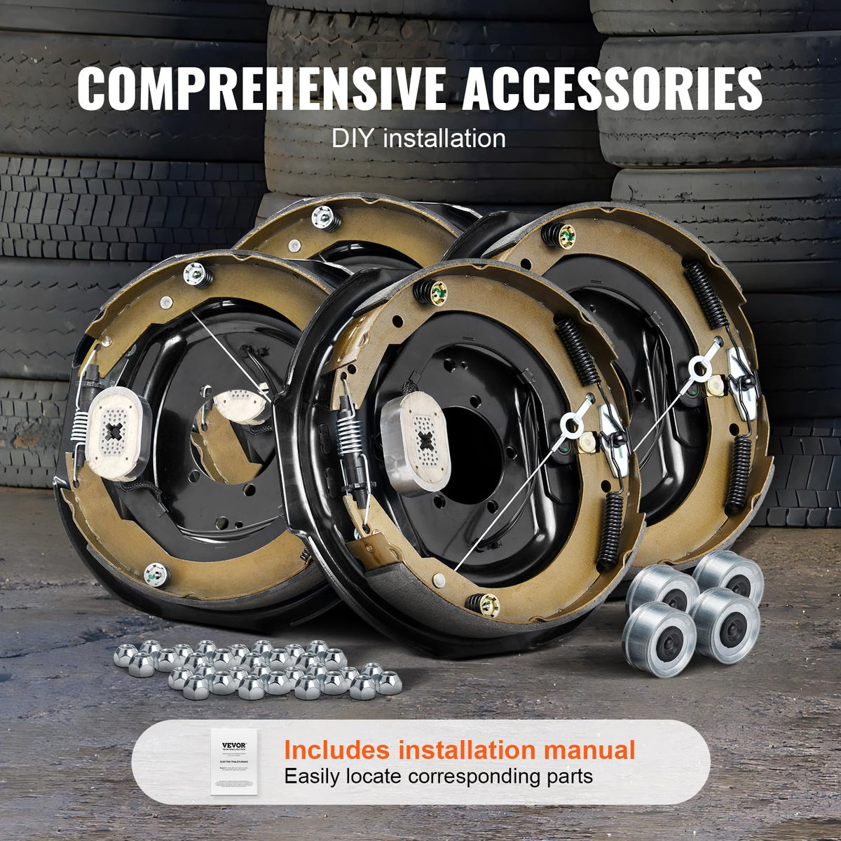 Vevor Electric Trailer Brake Assembly, 12' X 2', 2 Pairs Self-Adjusting Electric Brakes Kit For 7000 Lbs Axle, 5-Hole Mounting, Backing Plates For Braking System Part Replacement (2 Right + 2 Left)