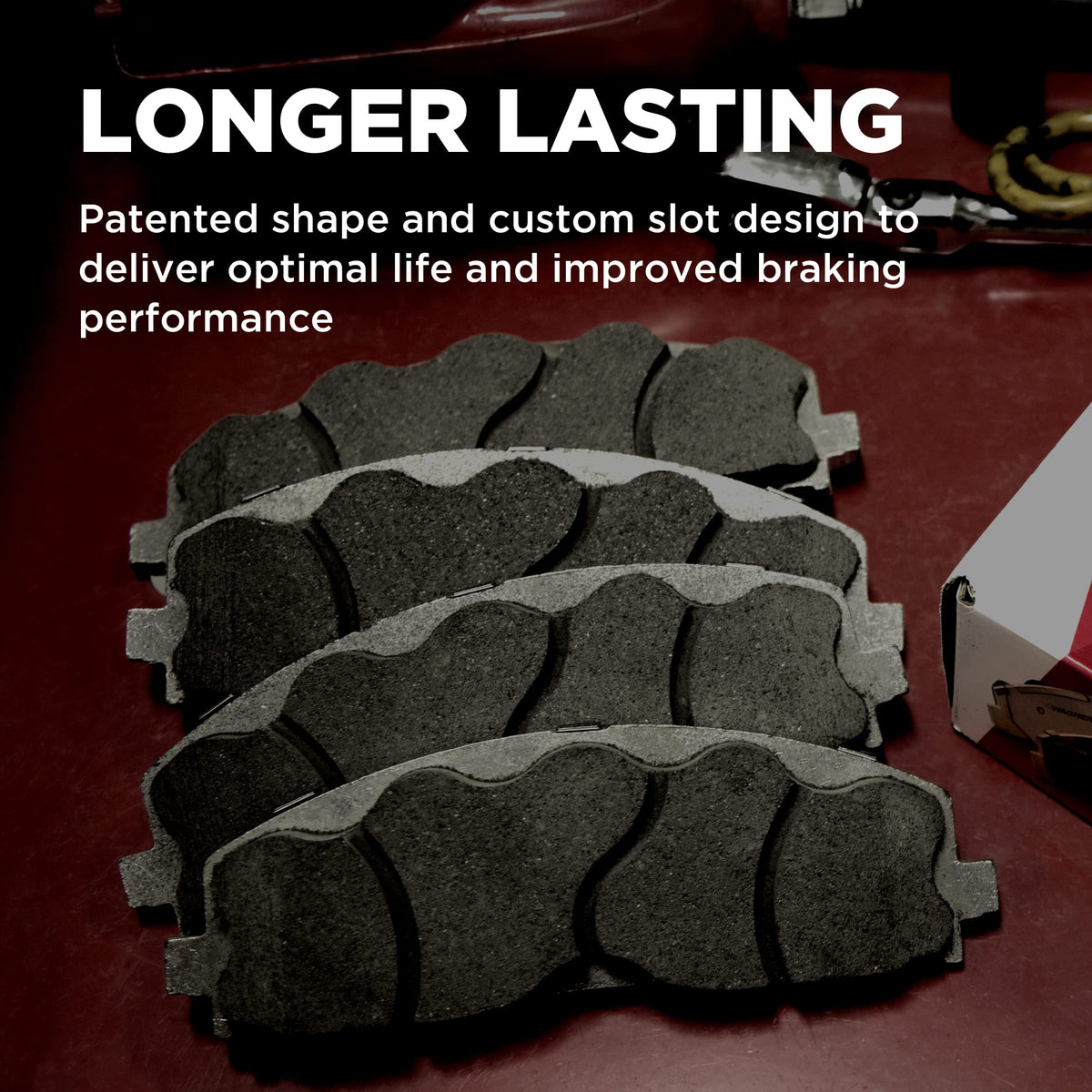 Q: How do Wagner OEX brake pads enhance braking performance?A: Wagner OEX brake pads feature a patented shape and custom slot design that improve braking efficiency, reduce rotor wear, and minimize residue, contributing to longer pad life.