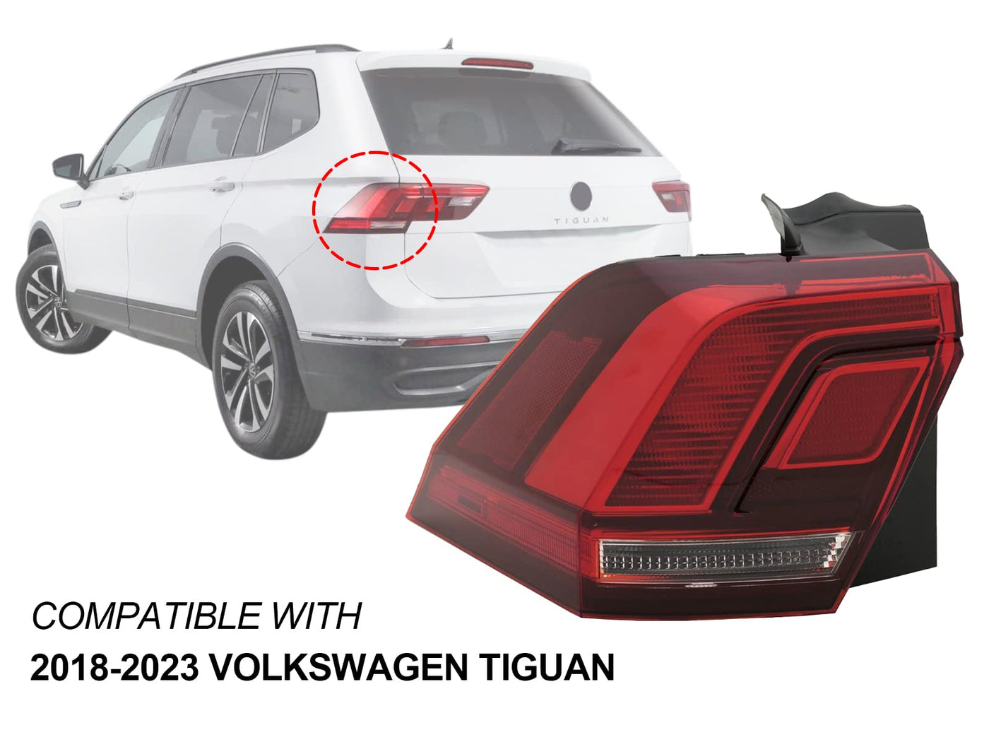 Q: What vehicles are compatible with the Auto Parts Avenue APA Replacement LED Tail Light?A: The Auto Parts Avenue APA Replacement LED Tail Light is compatible with the Volkswagen Tiguan models from 2018 to 2023, fitting OEM part numbers 5NN945095A, 5NN-945-095-A, and 5NN 945 095 A.