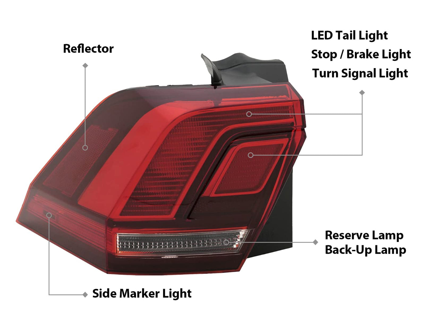 Aftermarket Oem Replacement Tail Light Assembly Position : Outer Rear Lamp , Driver Left Lh Side Features: Led Tail Lamp , Stop , Turn Signal , Side Marker Lamp , Light Bulb Included Made In Taiwan (Dot) Department Of Transportation And (Sae) Society Of Automotive Engineers Approval Direct Replacement. Built To Strict Quality Control Standards. We Recommend That Installation Be Done By Professionals, As Item Will Not Come With Installation Instructions And We Do Not Provide Any Installation/Troubleshooting Assistance Fits Oem Part Number: 5Nn945095A , 5Nn-945-095-A , 5Nn 945 095 A Fits Partslink Number: Vw2804126 Fits Model And Year: 2023 2022 2021 2020 2019 2018 23 22 21 20 19 18 Volkswagen Tiguan