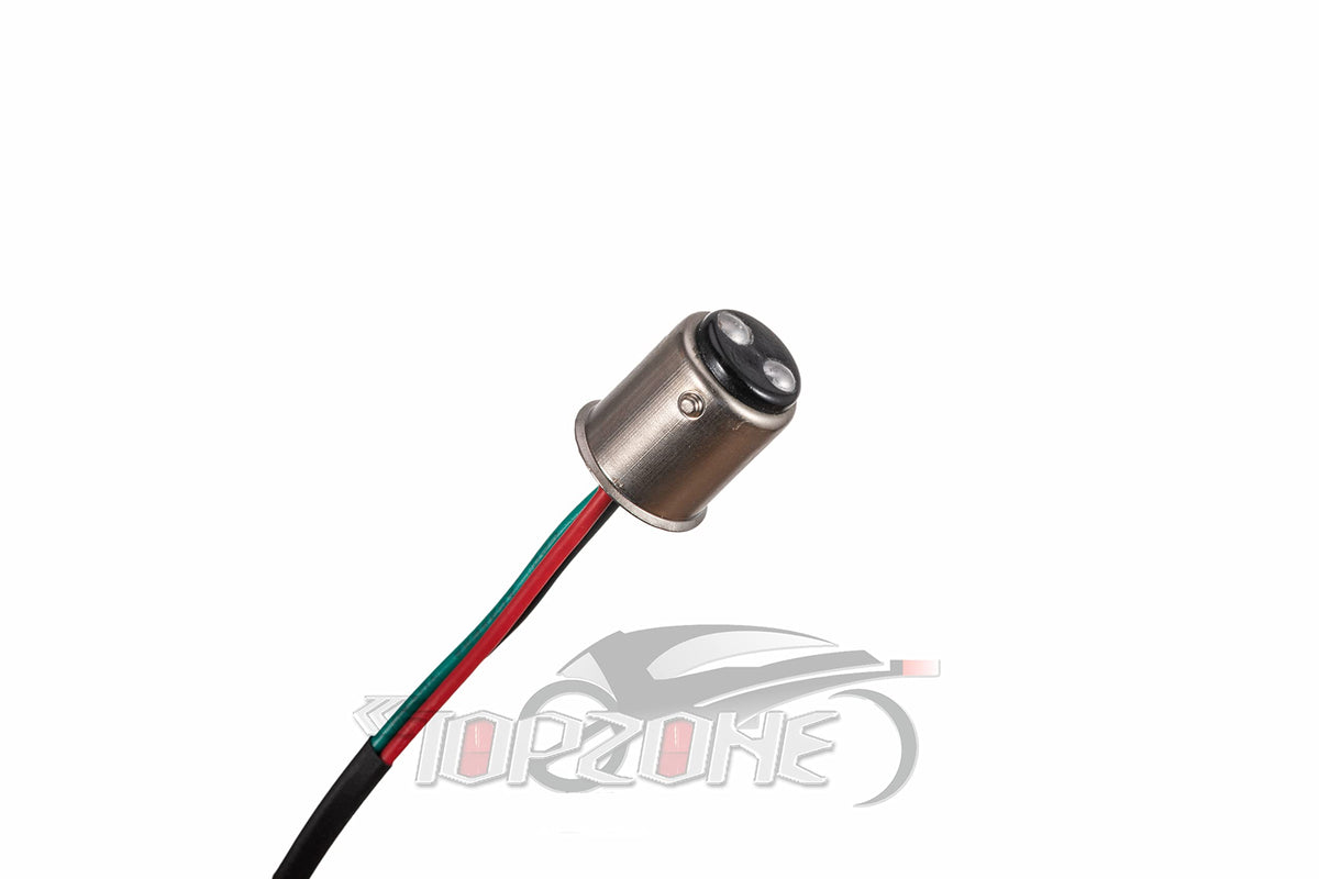 Running Light / Position Light : Red Color Stop Light / Brake Light : Red Color More Powerful When You Are Braking Integrated Turn Signals Indicators : Amber Color On Each Half Of The Taillight (Wires Are Independent) To Slow Down The Blinking Rate Use Provided Resistors If Necessary: