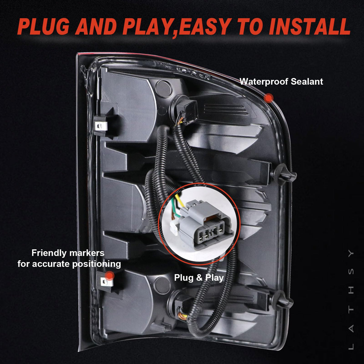 Q: How do I install the Lathsy Tail Light Assembly on my truck?A: Installation of the Lathsy Tail Light Assembly typically involves removing the old tail light, connecting the wiring harness, and securing the new assembly in place. For detailed instructions, please refer to your vehicle's manual or consult a professional.