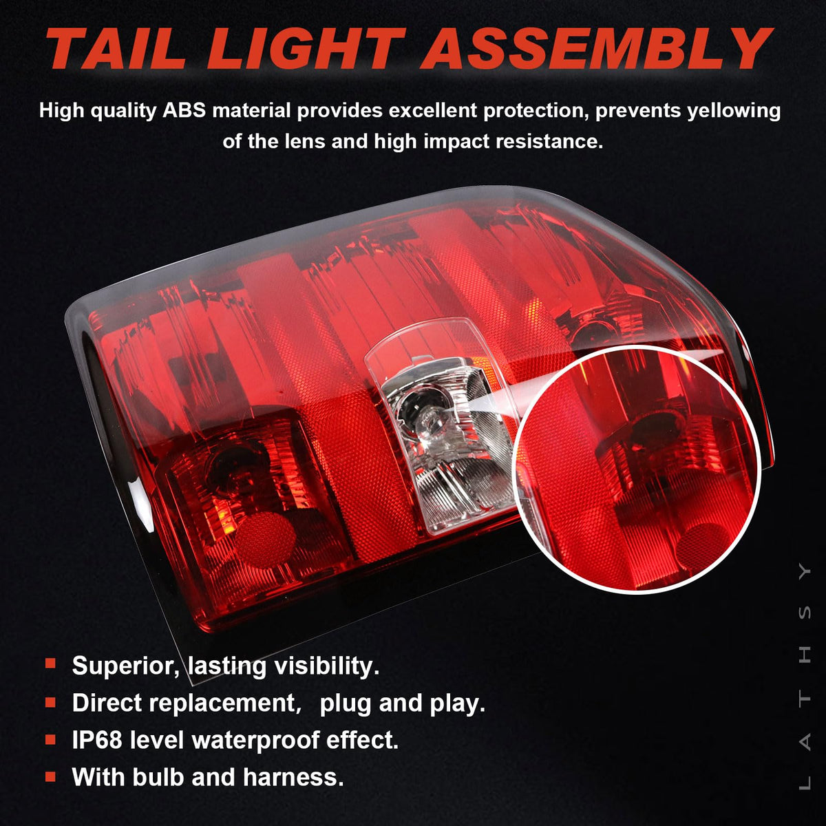 Lathsy Tail Light Assembly Compatible With 2007-2013 Chevy Silverado 1500 2500Hd 3500Hd Gmc Sierra 2500 Hd 3500 Hd (Black Border