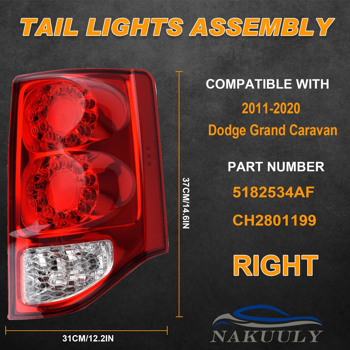 Nakuuly Tail Light Compatible With 2011-2020 Dodge Grand Caravan Right Passenger Side LED Taillight Rear Lamp Brake Signal Assem