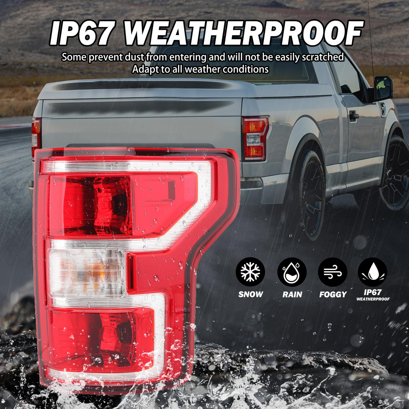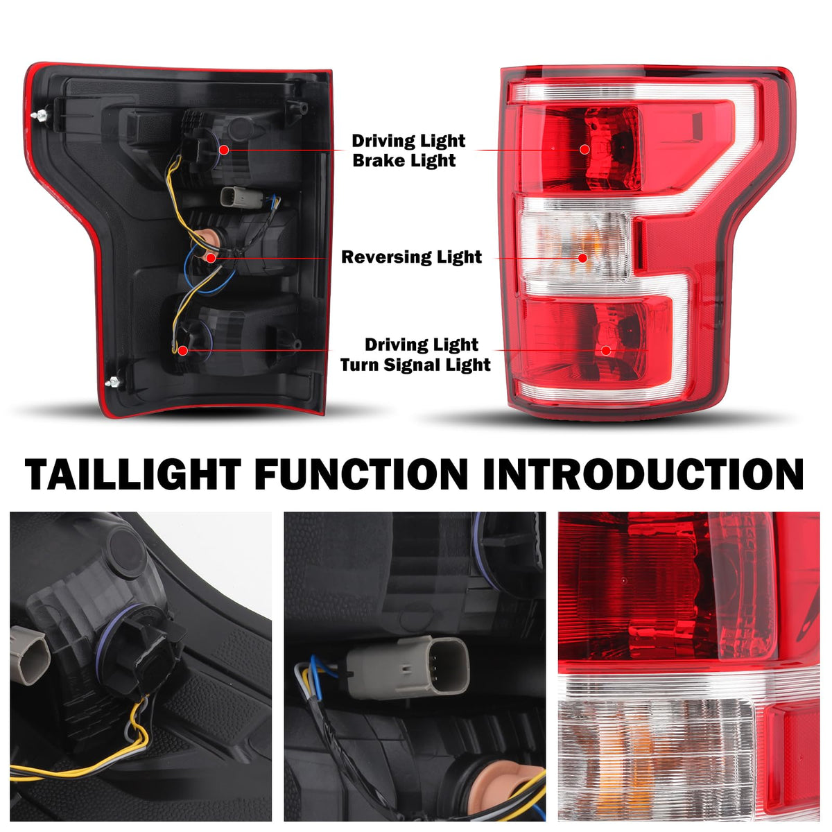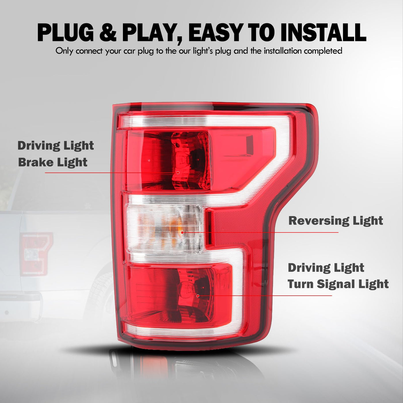 The Right Passenger Side Taillight Is For Ford F150 2018-2020 Xl/Xlt/King Ranch / Lariat / Platinum / Limited Models. Replacement For #Jl3Z-13404-H, With Halogen Bulb And Wiring Harness, Is Easy To Install And Will Have Your Car Looking Brand New In Less Than Ten Minutes. Exactly Like The Original Product, There Is No Need To Worry About Loose Taillights, Gaps And Other Problems. The Use Of High-Quality Materials Will Not Be Affected By All Kinds Of Bad Weather.