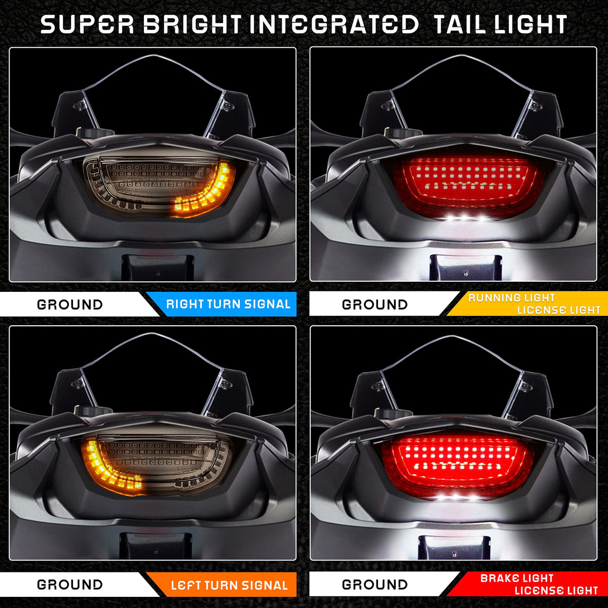Quasco Motorcycle Brake Tail Light Integrated Turn Signals Compatible With Honda Suzuki Yamaha Atv Cruiser Sportbikes Touring Di