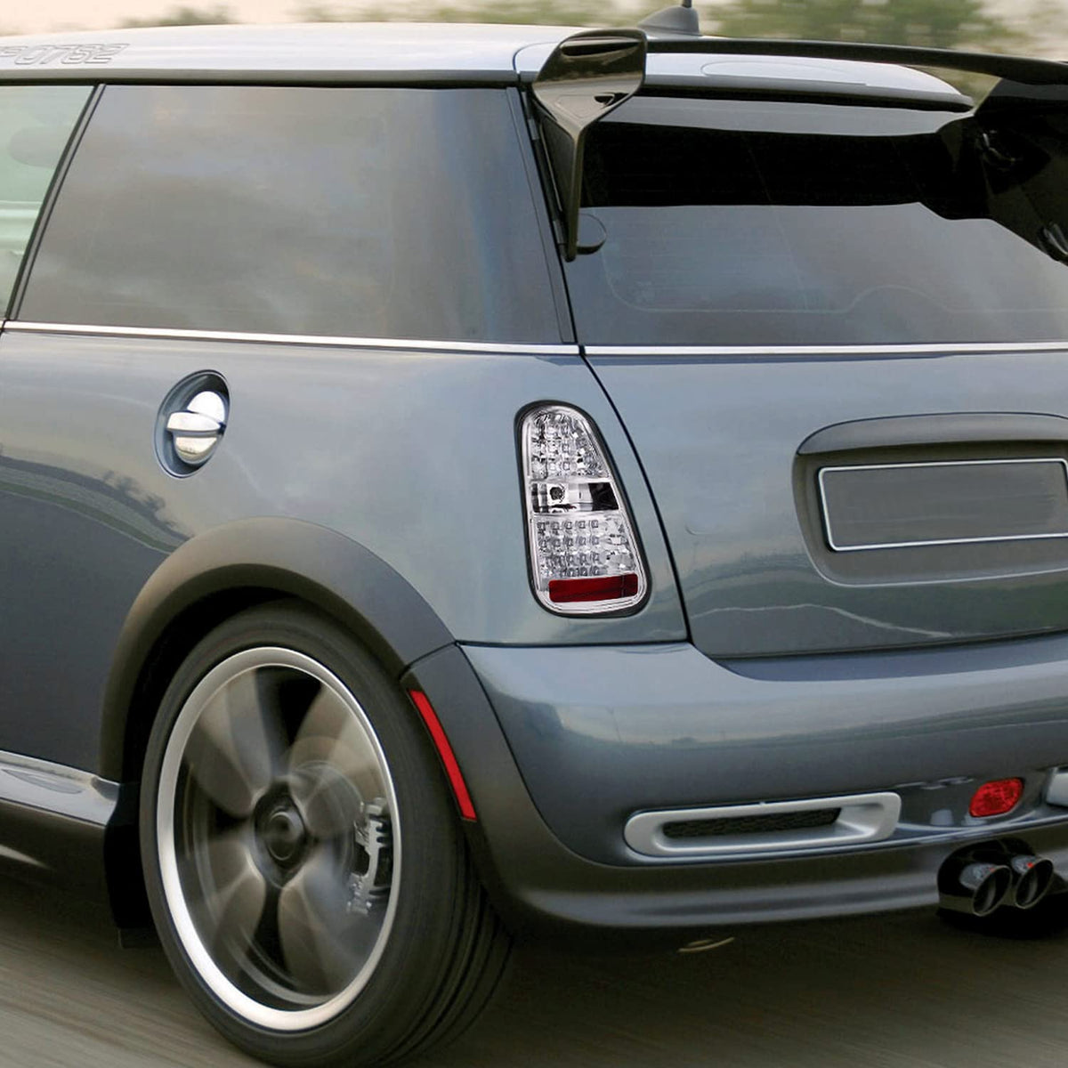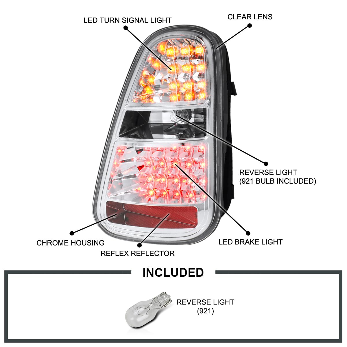 Spec-D Tuning Chrome Housing Clear Lens LED Tail Lights Compatible with 2005-2006 Mini Cooper S, Left + Right Pair Assembly