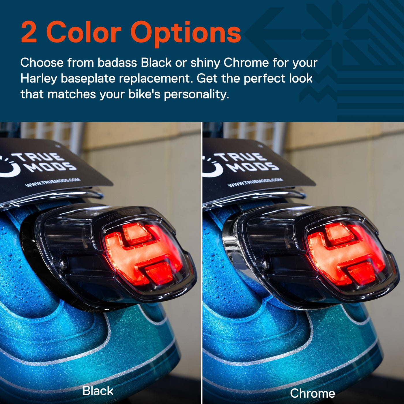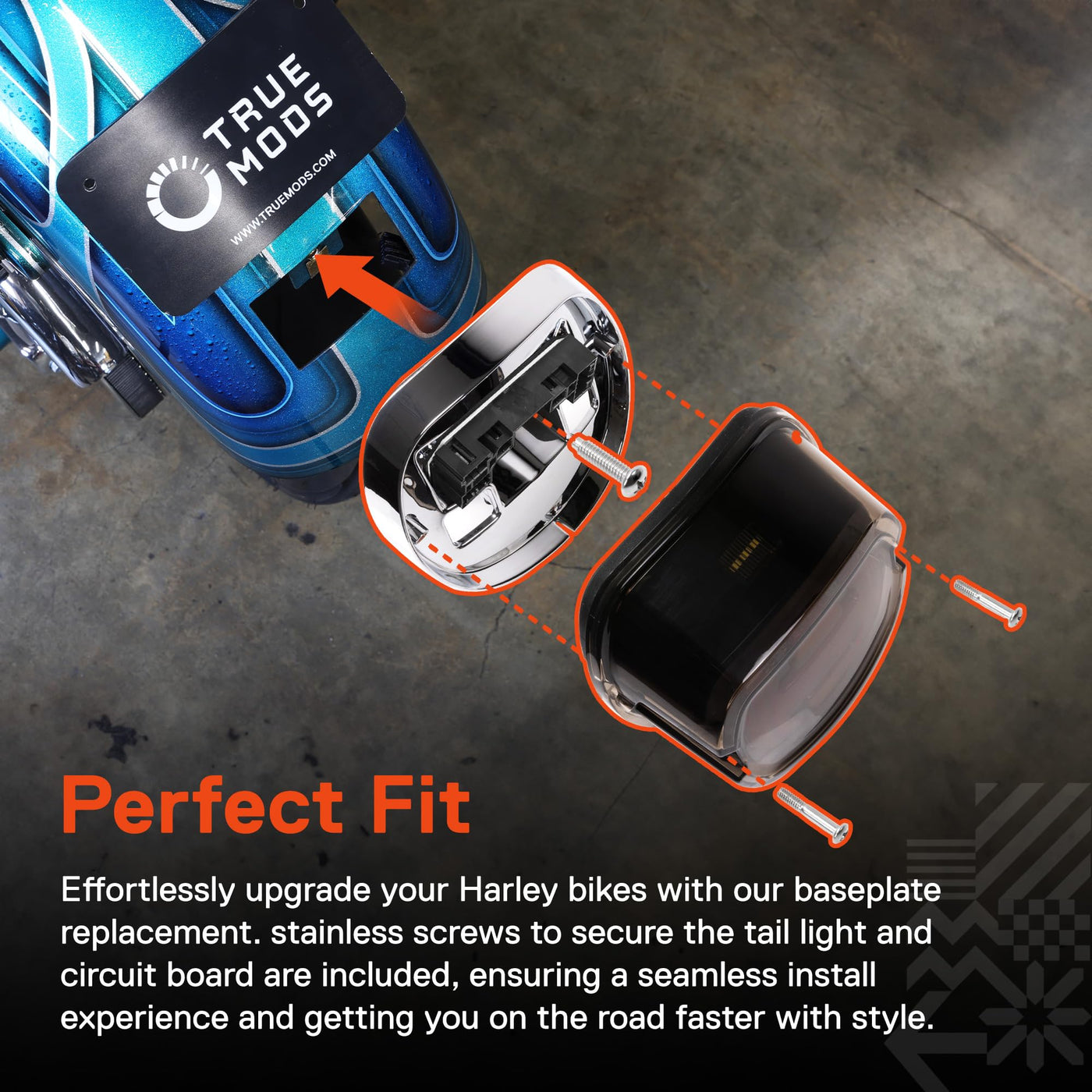 TRUE MODS Black HD Tail Light Base Plate Replacement for 2000+ Harley Davidson Sportster, Dyna, Road King, Electra Glide, Softail, Fat Boy