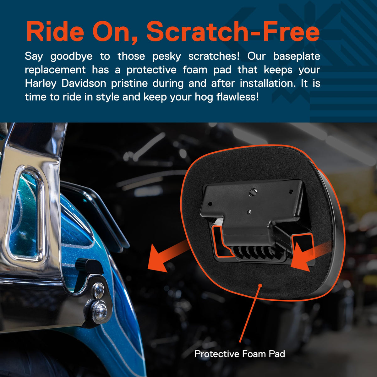 RIDE ON, SCRATCH-FREE: Our baseplate comes with a protective foam pad, ensuring your Harley Davidson remains pristine during and after installation.