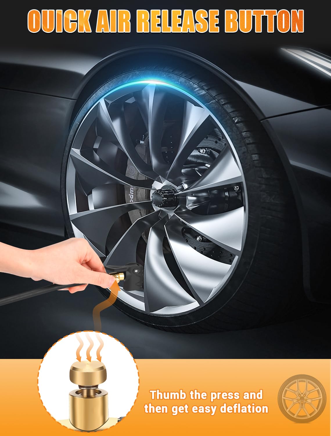 24'' Replacement Hose for Portable Tire Inflator, With Locking Presta Schrader Air Chuck, Quick Air Release Button, Direct Replacement for Short Tubes Supplied With Portable Air Pumps (1/4 thread)''