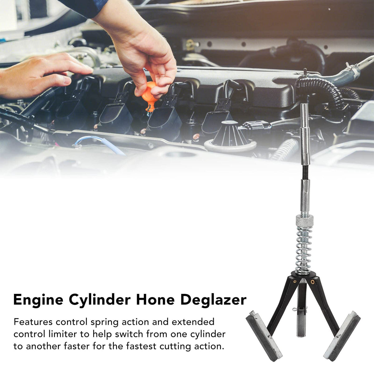 Feature:1. Main Function: Engine Cylinder Hone With 3 Piece 220 Grit 1 1/8In Stones, For Deglazing Engine Cylinders 3/4In To 2 1/2In In Diameter.2. Flexible Shaft: Features Control Spring Action And Extended Control Limiter To Help Switch From One Cylinder To Another Faster For The Fastest Cutting Action.3. Knurled Nuts: Knurled Wheel Adjusts Spring Pressure Of Stones Against Cylinder Bore. Adjust Spring Tension To Suit Cutting Action.4. Durable Material: Engine Brake Cylinder Bore Hone Tool Is Made Of Metal, Rust And Wear Resistant, Easy To Use And Self Centering.5. Wide Application: Engine Cylinder Hone Tool Is Widely Used In Cars, Trucks, Buses, Tractors, Industrial Engines And Small Air Cooled Engines.Specification:Item Type:&Nbsp;Engine&Nbsp;Cylinder&Nbsp;Hone&Nbsp;Deglazermaterial: Metalfunction: For Deglazing Engine Cylinders 3/4In To 2 1/2In In Diameter Package List:1 Xengine&Nbsp;Cylinder&Nbsp;Hone&Nbsp;Deglazer