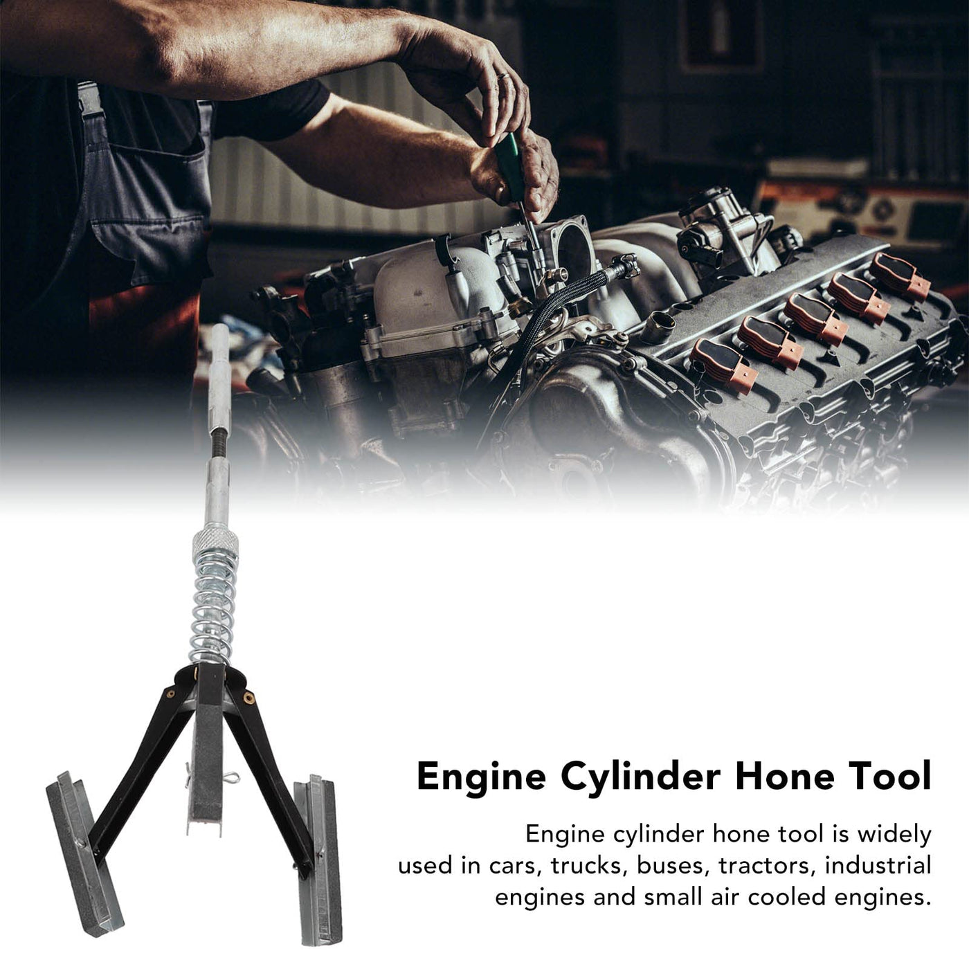 Q: Can the 3 Jaw Cylinder Sander be used on various types of engines?A: Yes, this engine cylinder hone is widely applicable for various engines, including cars, trucks, buses, tractors, industrial engines, and small air-cooled engines.