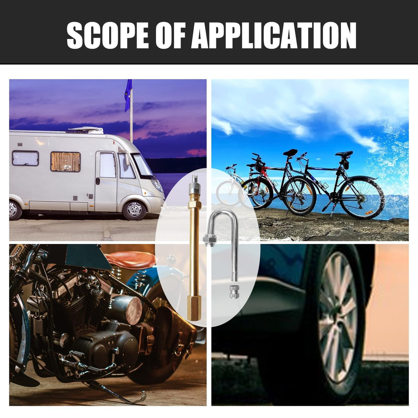 Q: What vehicles are compatible with the 5PCS Dually Valve Stem Extenders?A: The 5PCS Dually Valve Stem Extenders are designed to fit a wide range of vehicles, including trucks, RVs, motorhomes, coaches, pickups, motorcycles, bicycles, and trailers. They are compatible with most standard American tire valves, making them a versatile choice for various heavy dualies wheel vehicles.